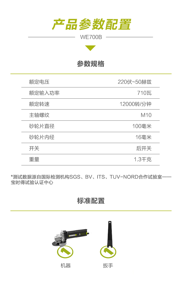 > 威克士(WORX)角磨机WE700B 切割机打磨机抛光机开槽机磨光机手磨机砂轮机多功能五金电动工具