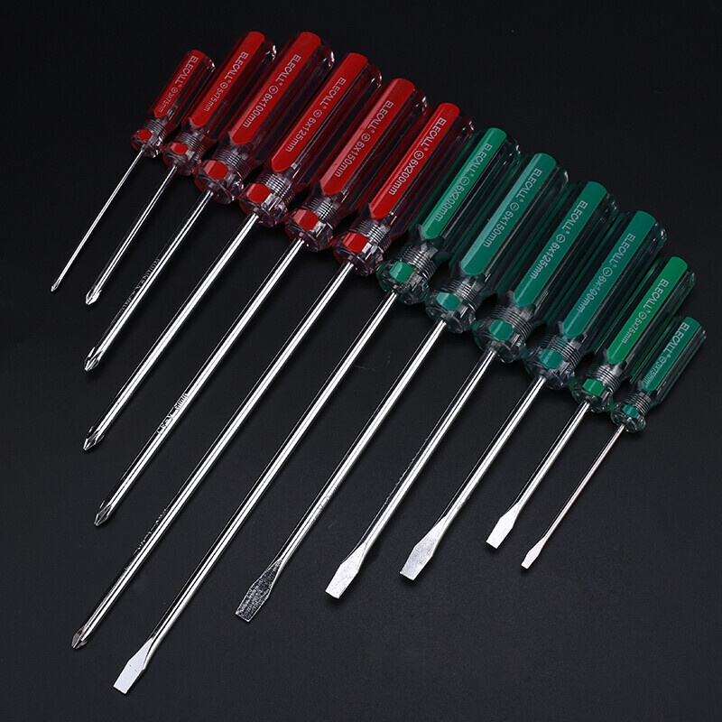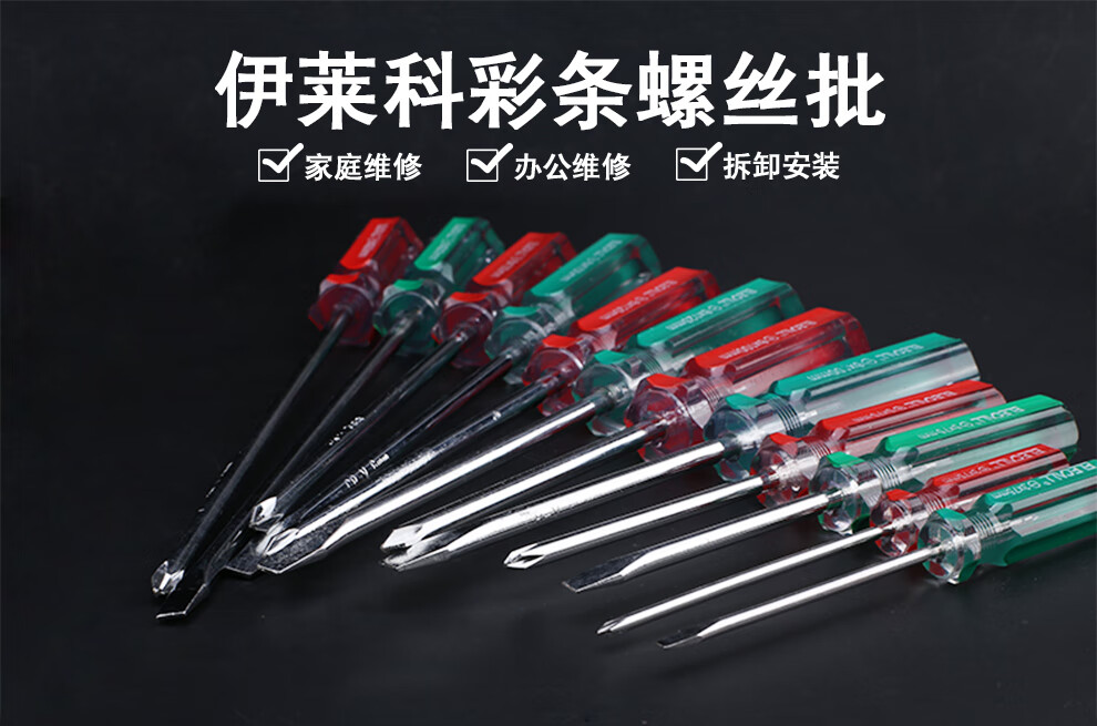 > 伊莱科(ELECALL)彩条带磁性十字一字螺丝批电工螺丝刀套装散卖五金工具 红色(十字单把) 3*75