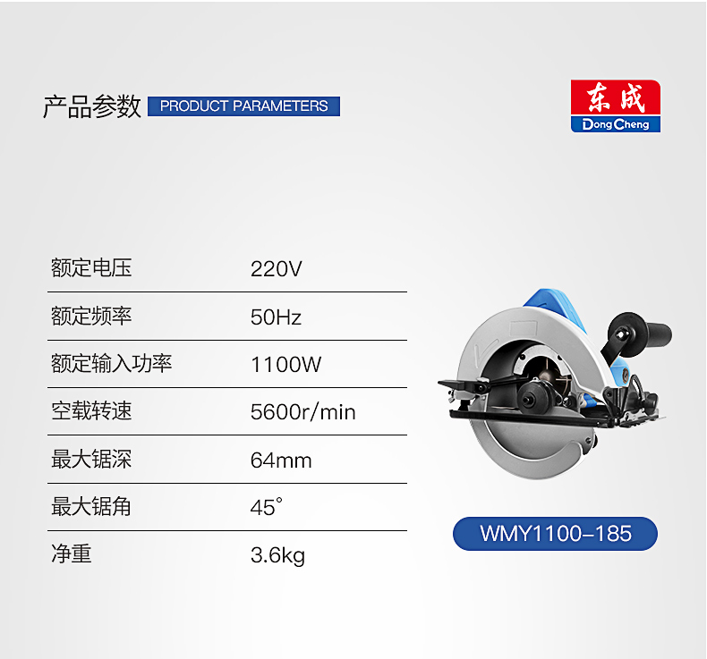 > 东成电圆锯WMY1100-185手提电锯7寸木工板铝塑板切割圆盘锯