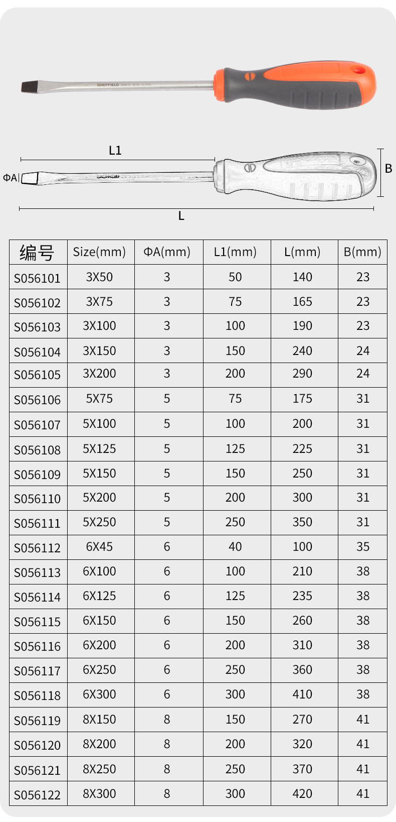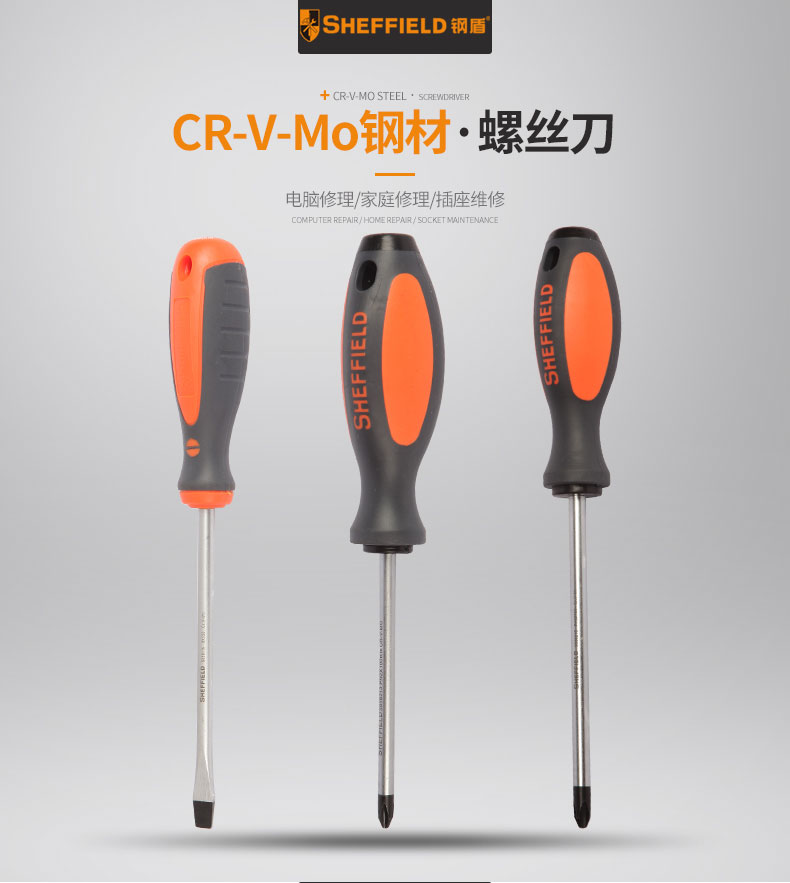> 钢盾 SHEFFIELD S056108 双色柄一字螺丝刀 5x125mm 平行螺丝刀 改锥螺丝批 带磁性 平口起子