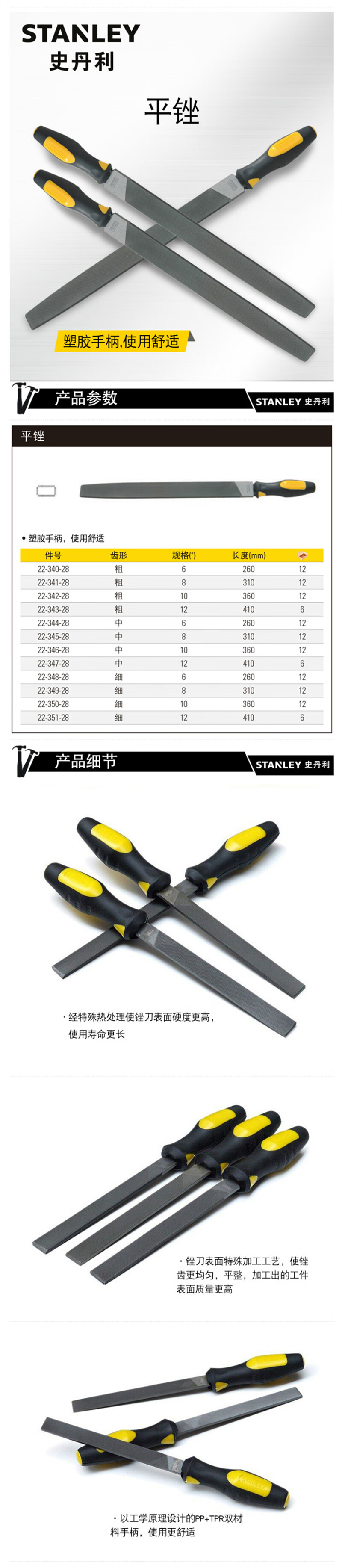 > 史丹利(STANLEY)中齿平锉6英寸扁锉钳工锉刀金属钢锉木工打磨工具22-344-28