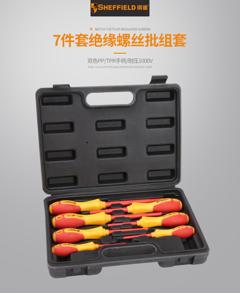 钢盾 SHEFFIELD S057002 7件套双色绝缘螺丝批组套电工VDE绝缘螺丝刀一十米字 7件套双色绝缘螺丝刀组套