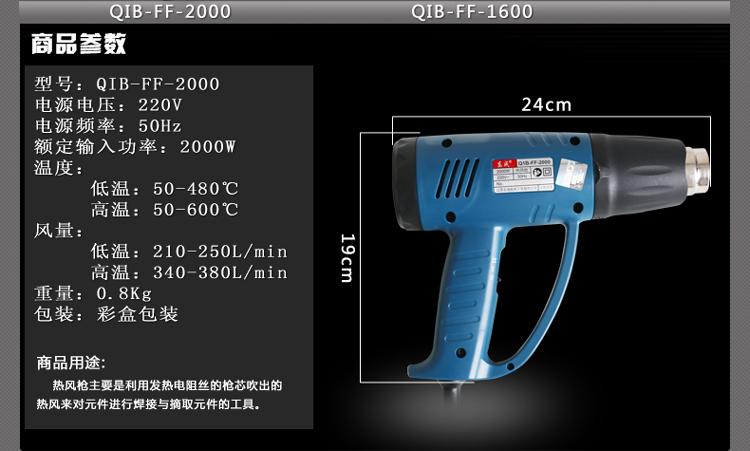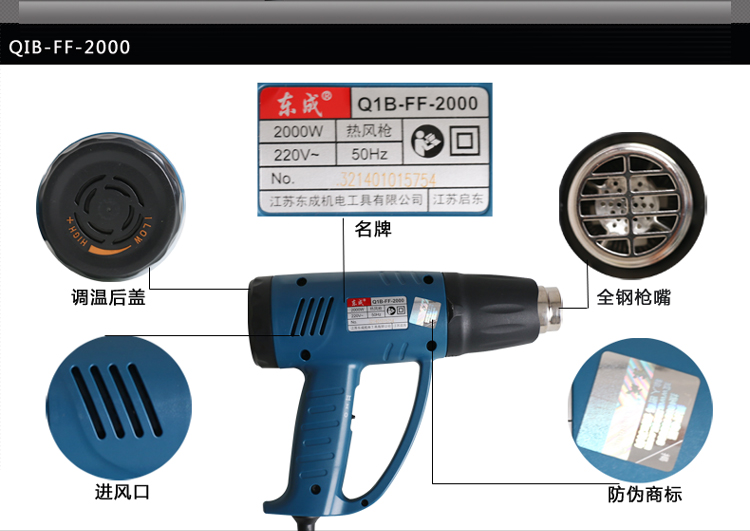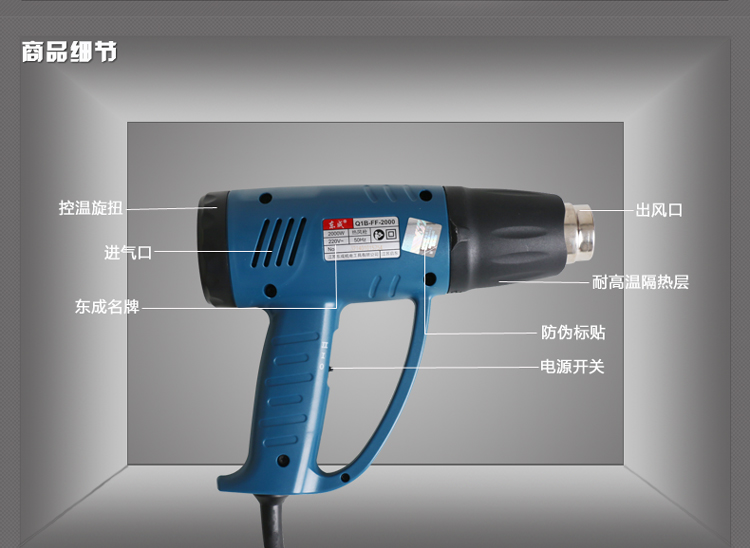 > 东成热风枪FF-2000电烤枪汽车贴膜烤枪大功率电热吹风机电动工具 FF-2000标配