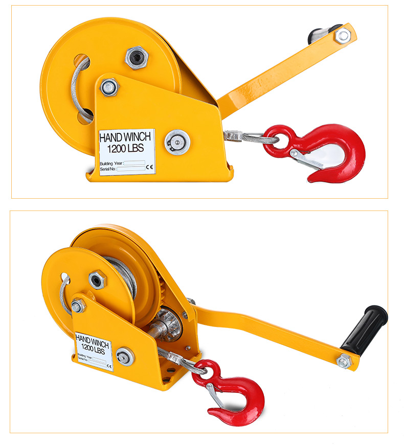 > 手动绞盘双向自锁式手摇卷扬牵引葫芦小型绞车升降吊机家用起重机 1200磅精品款(无绳无钩)