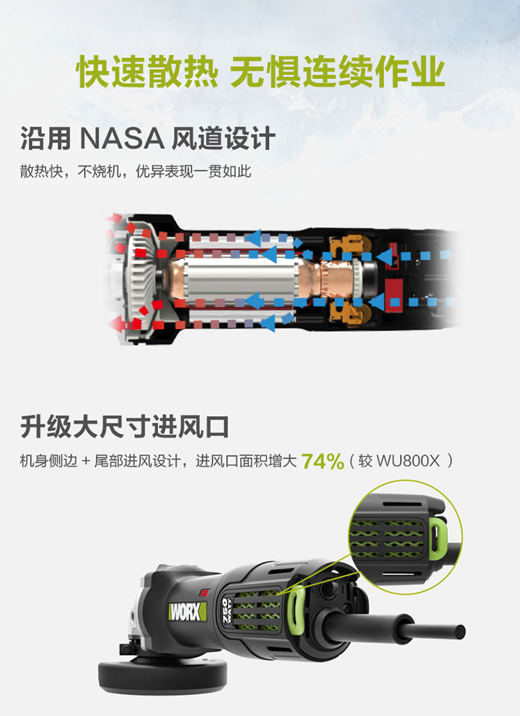 > 威克士(WORX)工业级角磨机WU810 切割机打磨机开槽机抛光机角向磨光机手磨机砂轮机五金电动工具