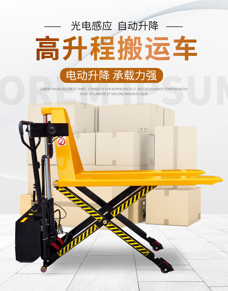 > 斯铂格 高升程叉车 液压搬运车高起升剪式装卸地牛 1.5吨升高0.8m宽550mm光电感应款 BGC-101