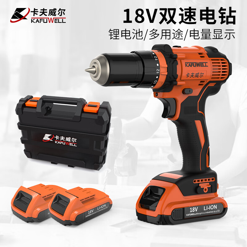 卡夫威尔 18V双速带冲击电钻 家用充电钻 大功率电动螺丝刀 墙面打孔拧螺丝电起子 两电一充 P3857A