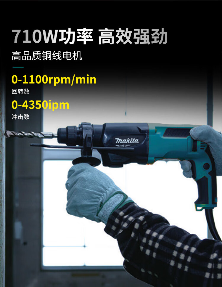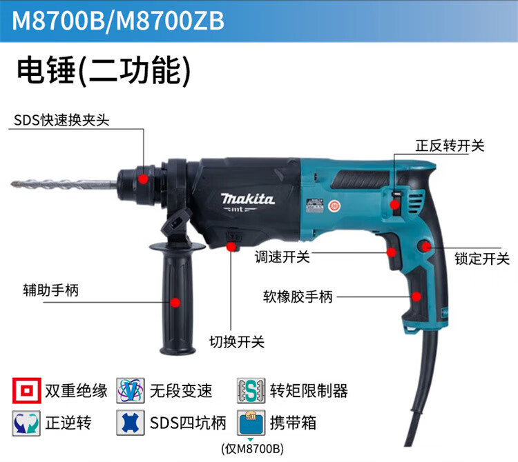 牧田(MAKITA)M8700ZB电锤两用冲击钻工业级混泥土电钻电动工具22MM 710W