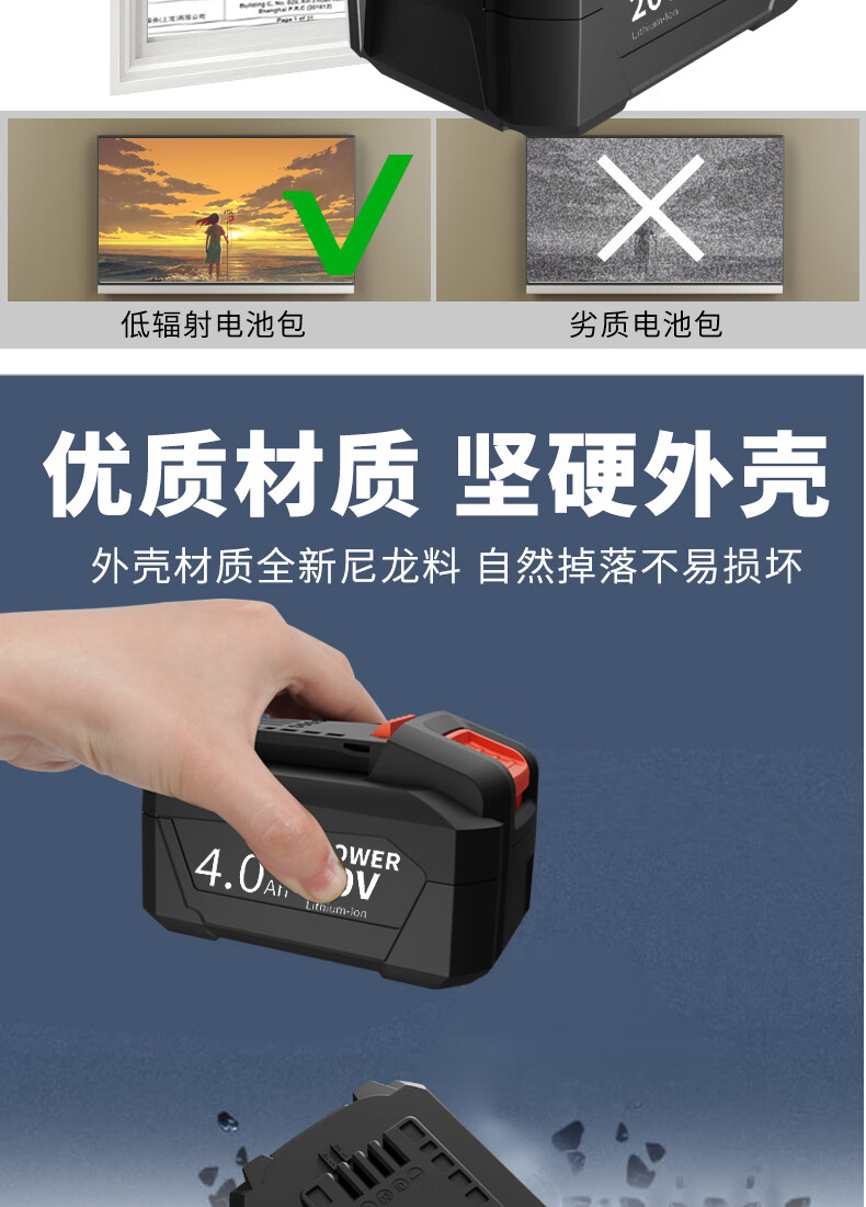 卡夫威尔20V冲击锂电钻 强力充电螺丝刀电起子 2.0Ah电池 PA4221F-Y-2S-1