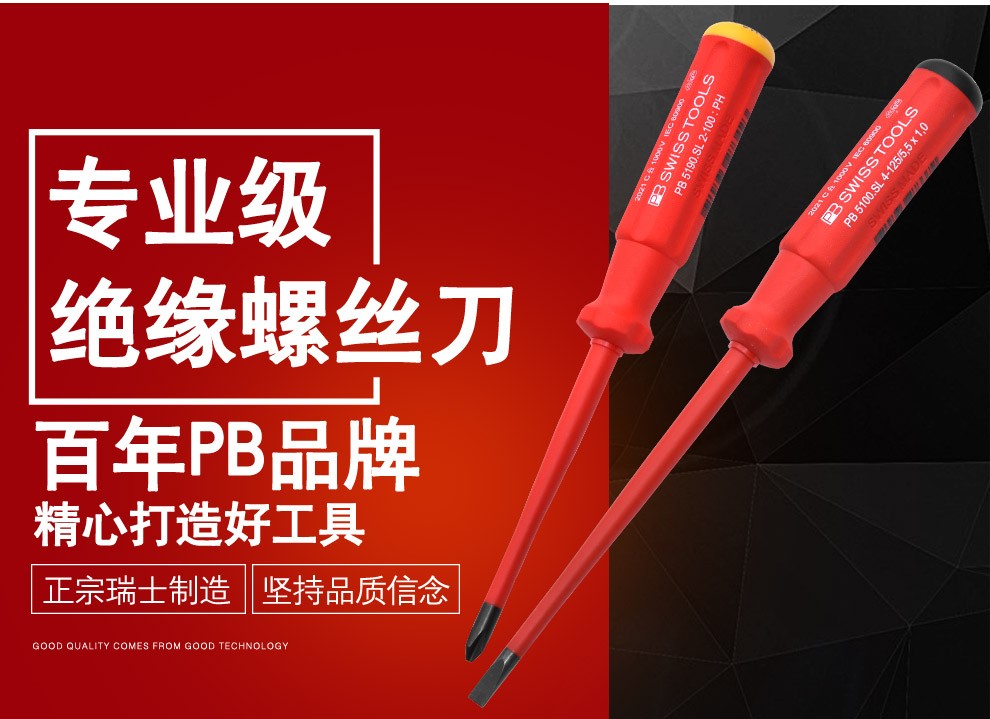 > PB SWISSTOOLS进口十字一字绝缘螺丝刀耐高压1000V电工专业细杆螺丝批起子套装 一字3.5*100mm