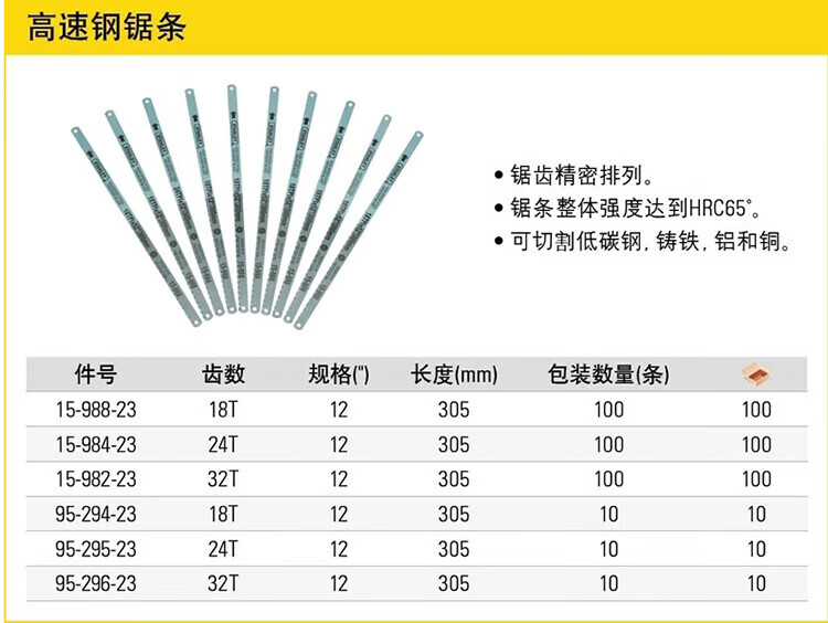 > 史丹利(STANLEY)15-988-23 18齿高速钢锯条12(x100) 钢锯条