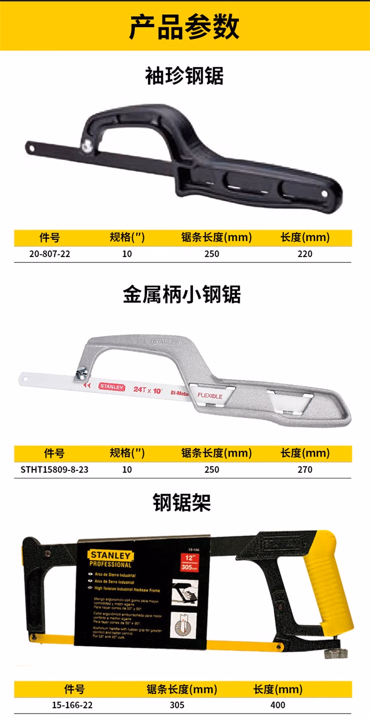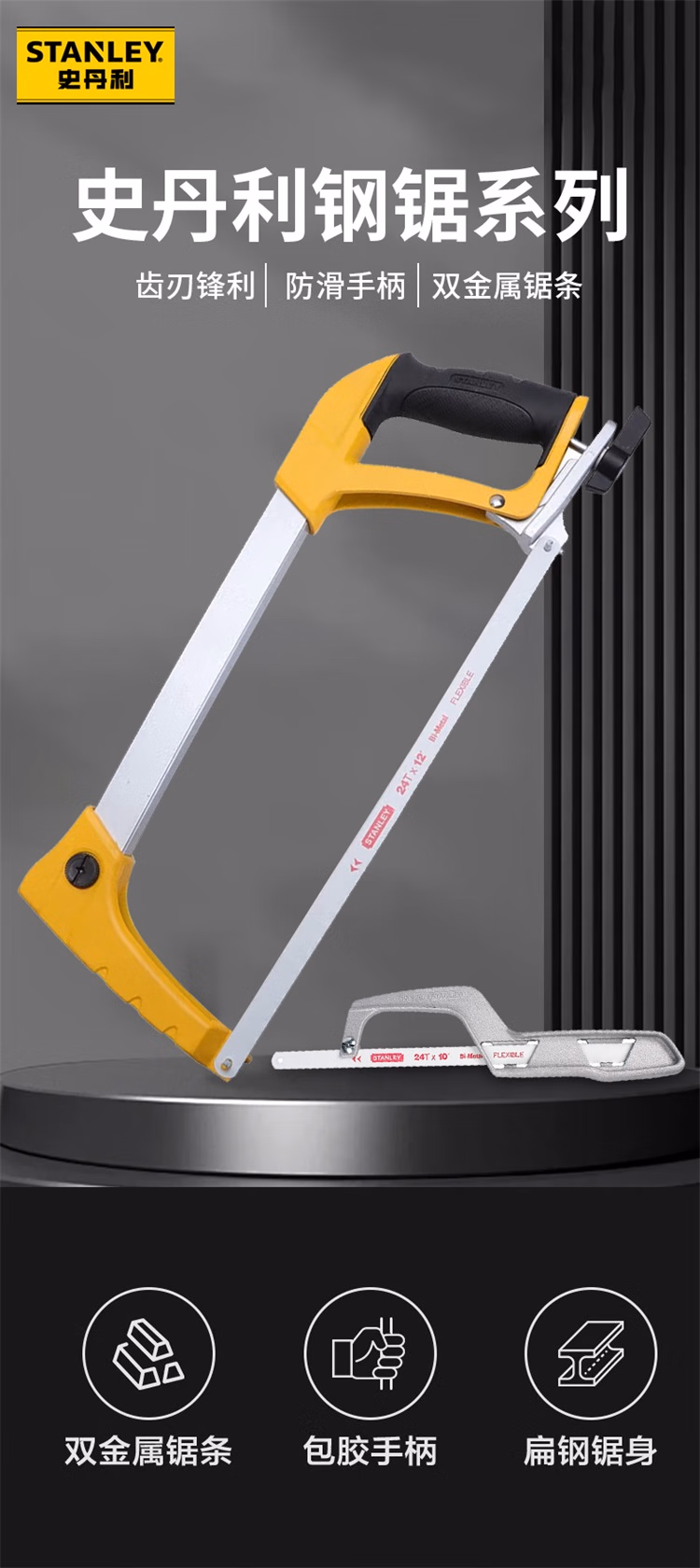 > 史丹利(STANLEY)金属柄家用小钢锯10英寸木工切割手锯锯条锯弓STHT15809-8-23