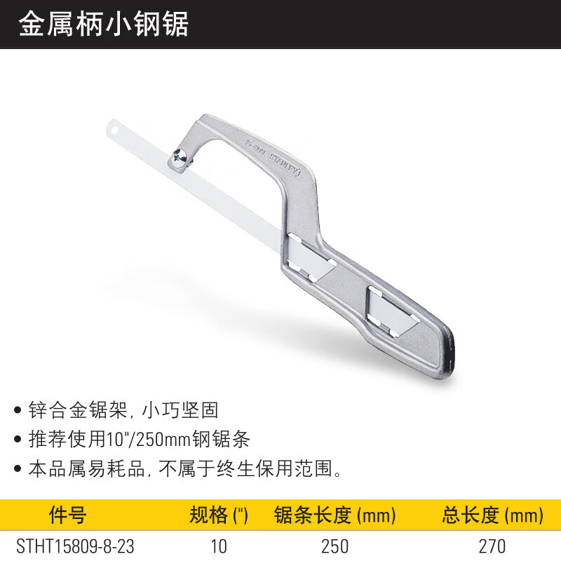 史丹利(STANLEY)金属柄家用小钢锯10英寸木工切割手锯锯条锯弓STHT15809-8-23