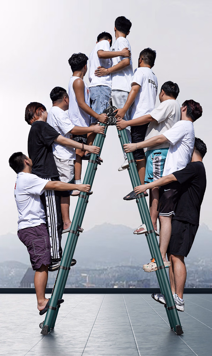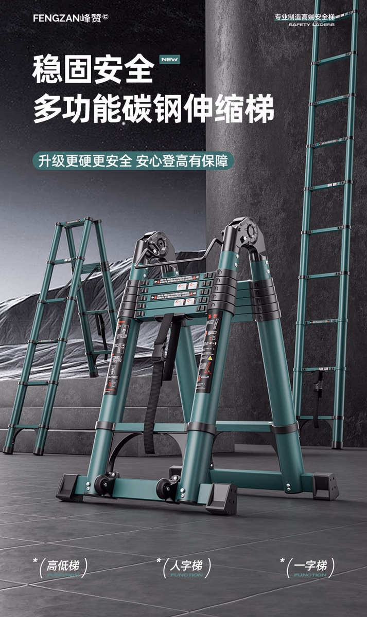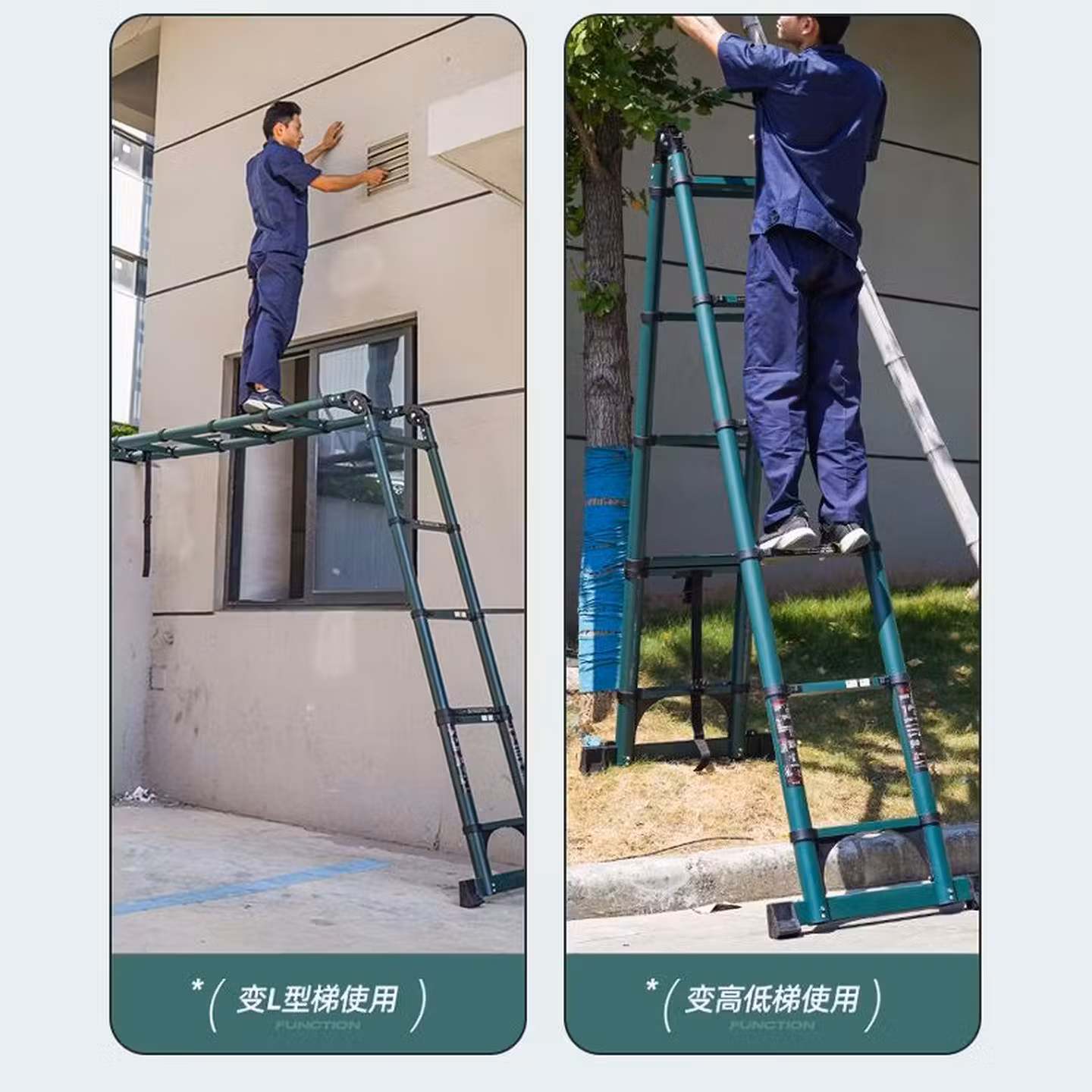 > 行走梯人字伸缩梯铝合金加厚工程折叠梯家用多功能便携升降楼梯子 [铝合金]多功能5.4米