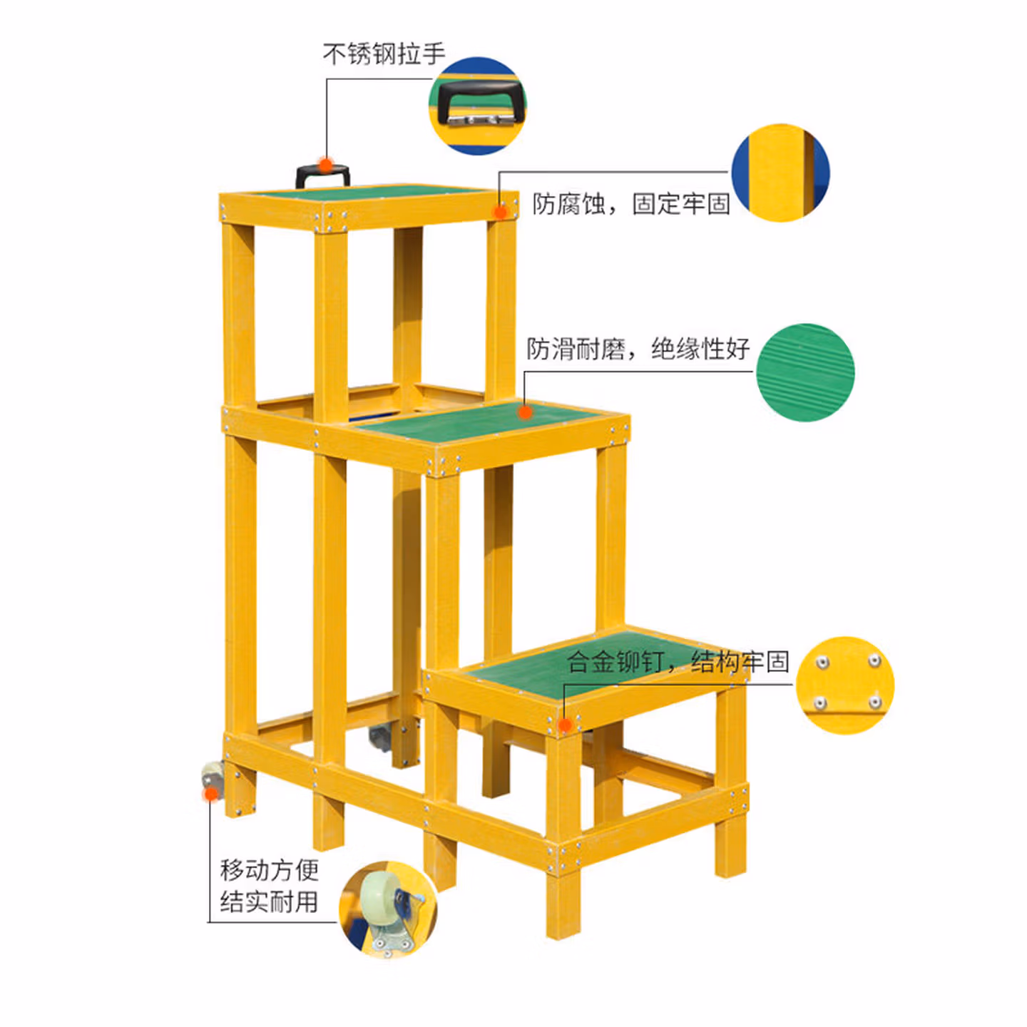 绝缘凳电工凳三层玻璃钢绝缘高低凳子耐压220KV绝缘梯凳可定做型 三层_300*500*1200
