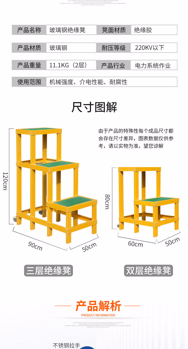 > 绝缘凳电工凳三层玻璃钢绝缘高低凳子耐压220KV绝缘梯凳可定做型 三层_300*500*1200