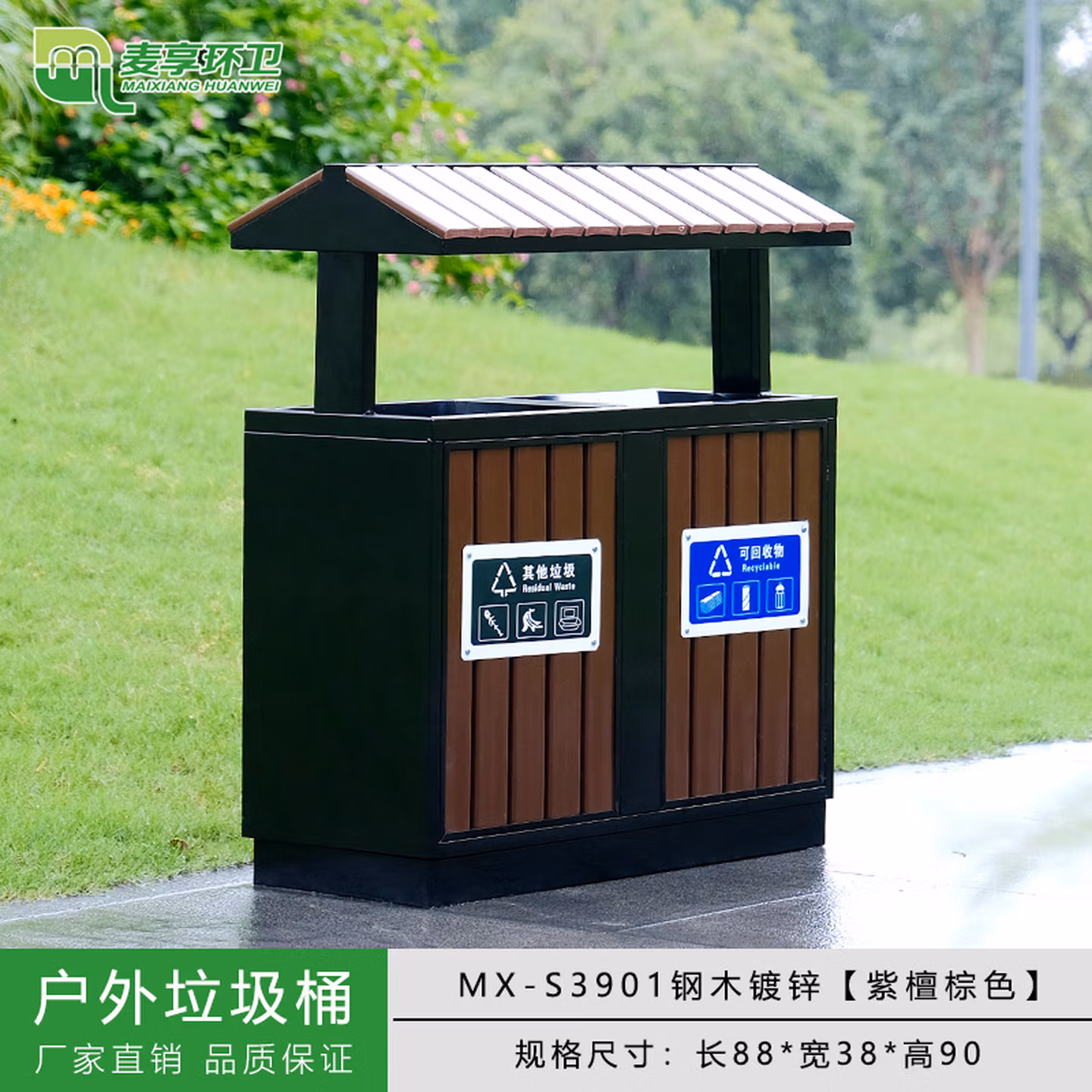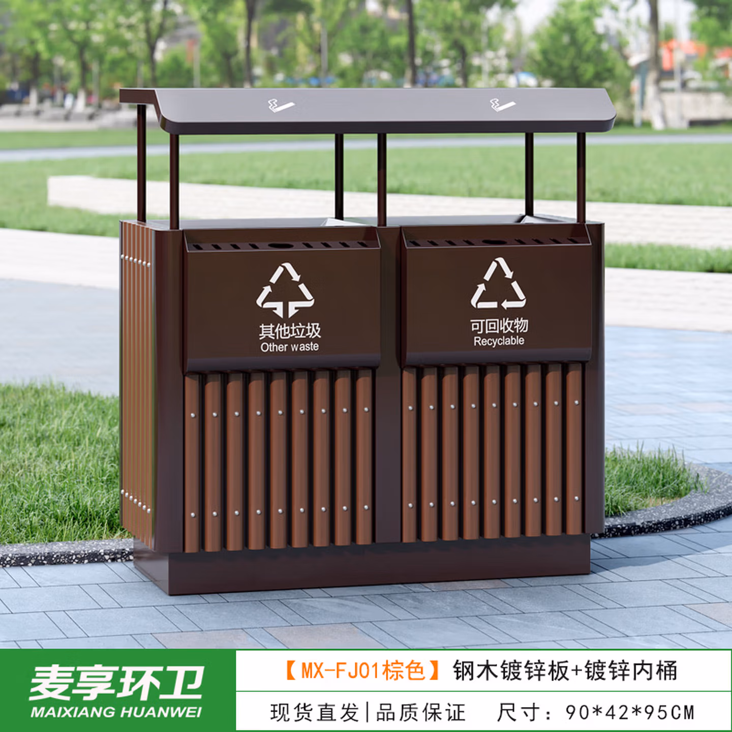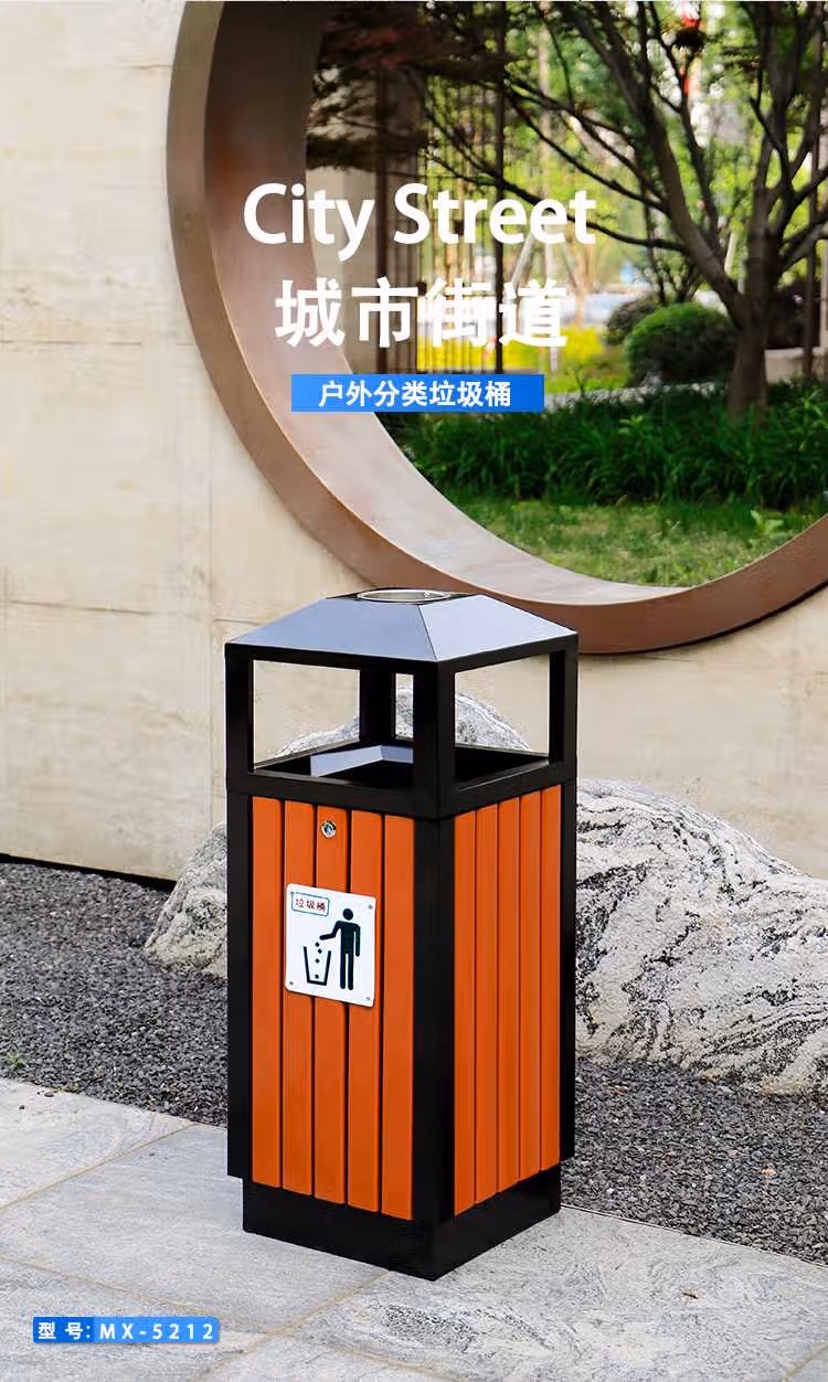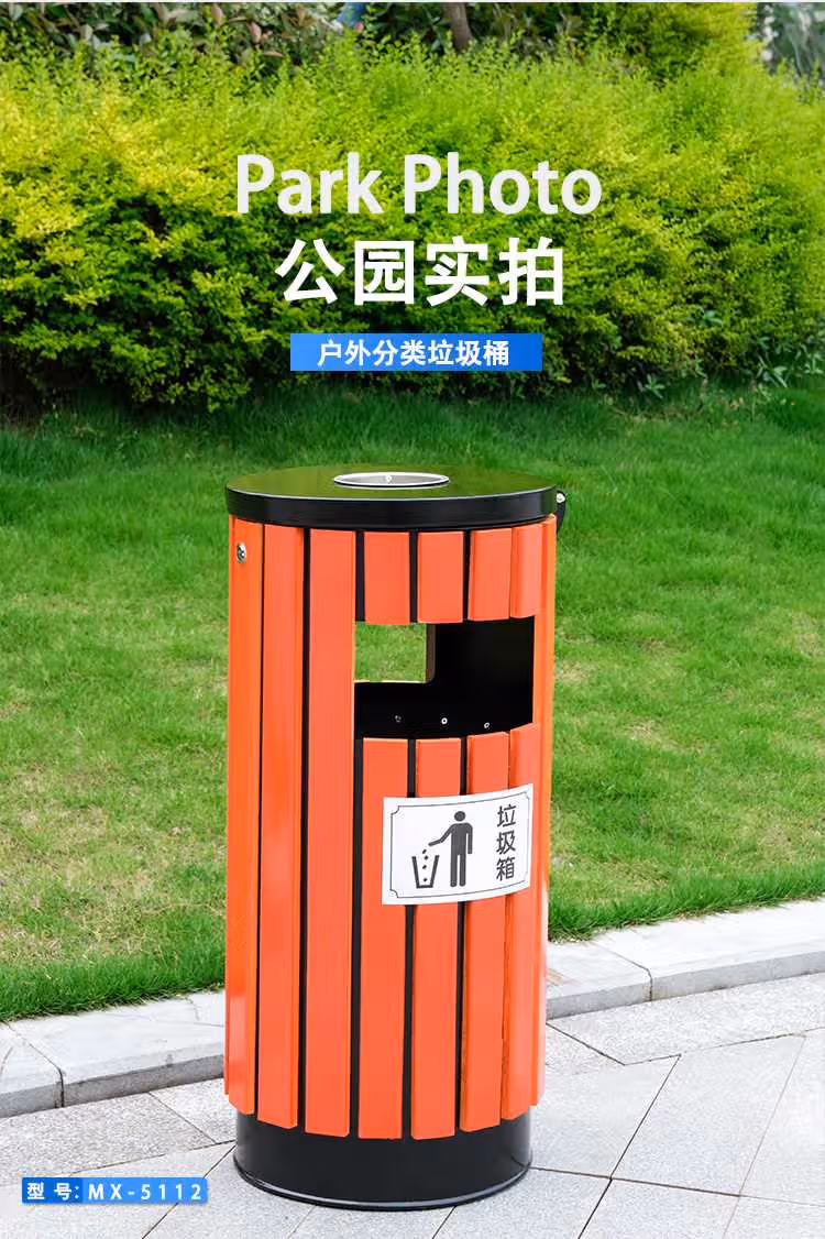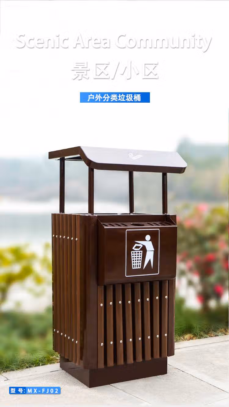 > 定制户外垃圾桶不锈钢别墅庭院公园景区小区带大号环卫室外分类果皮箱 MX-D4808 咖啡色木条
