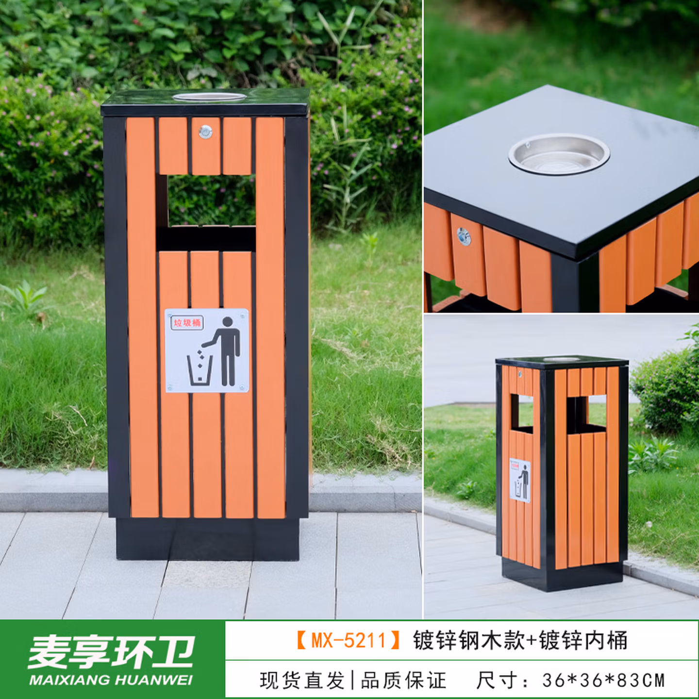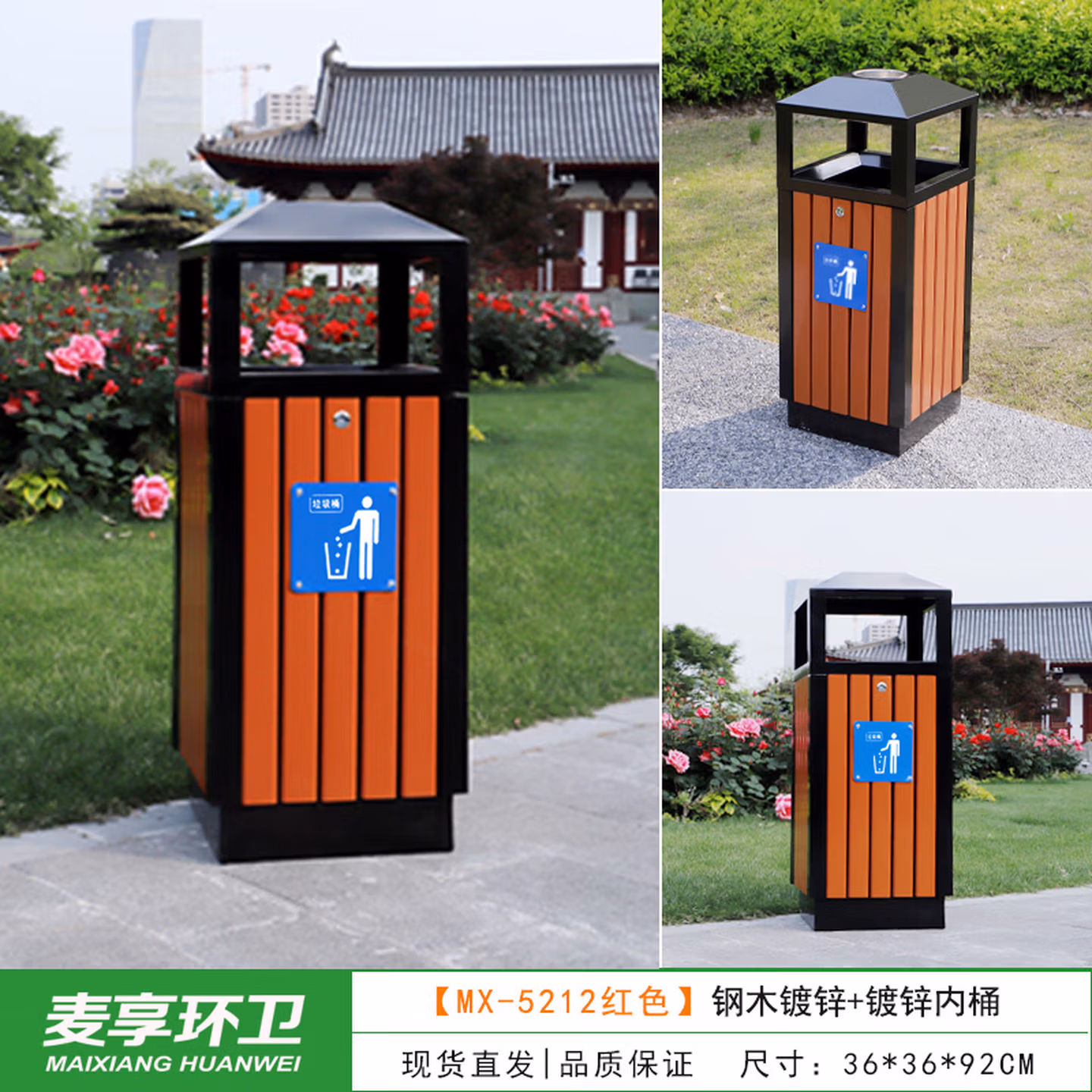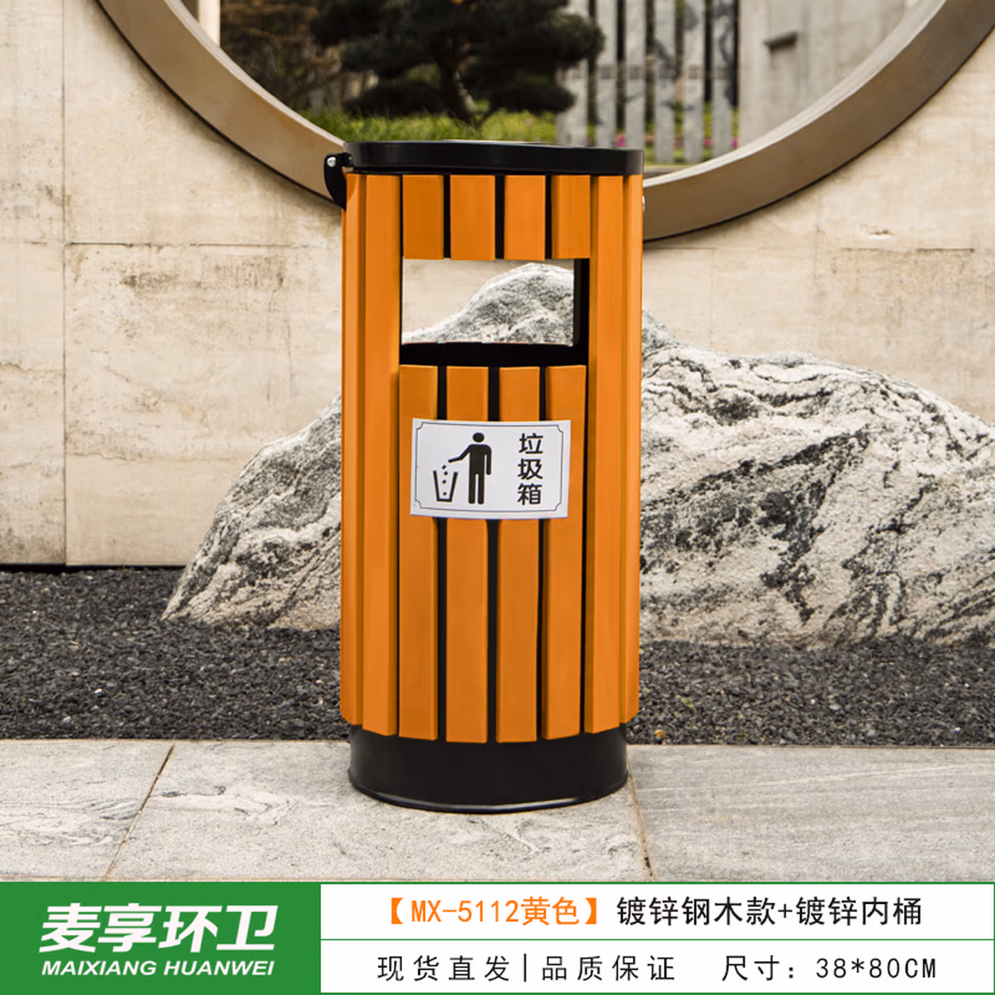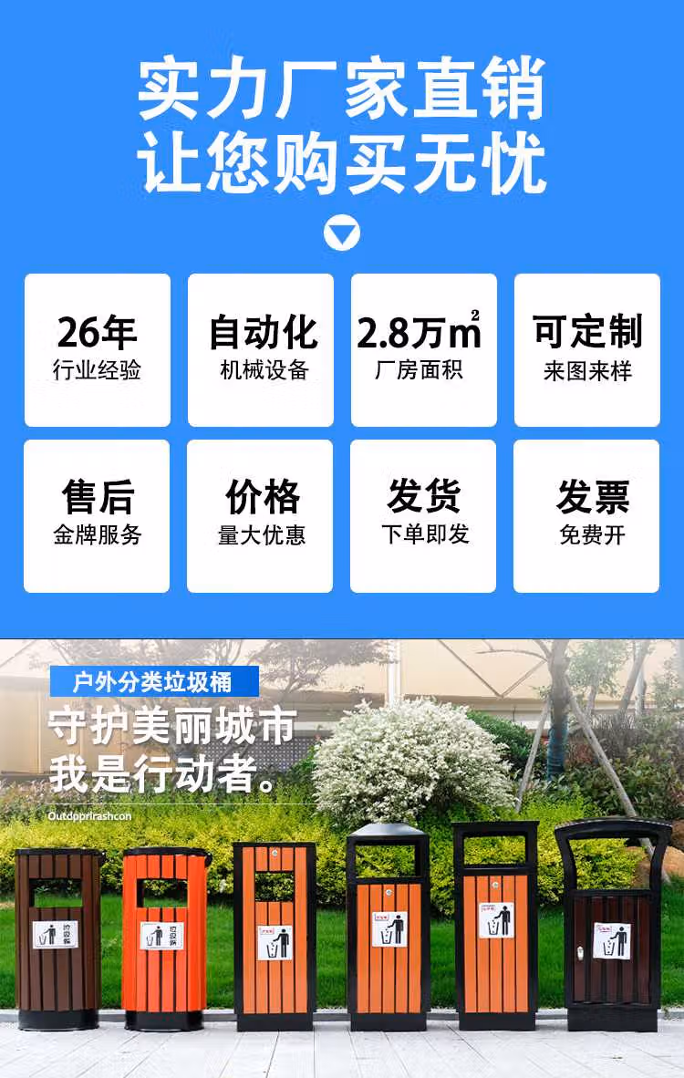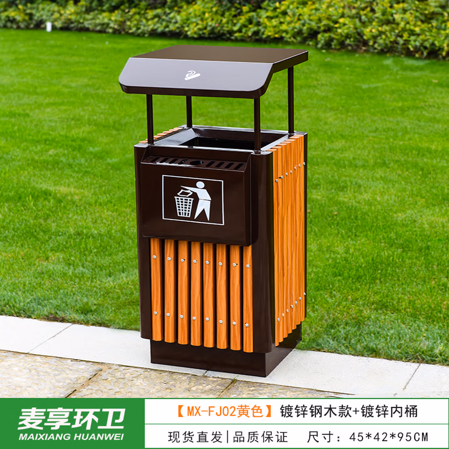 > 定制户外垃圾桶不锈钢别墅庭院公园景区小区带大号环卫室外分类果皮箱 MX-D4808 咖啡色木条