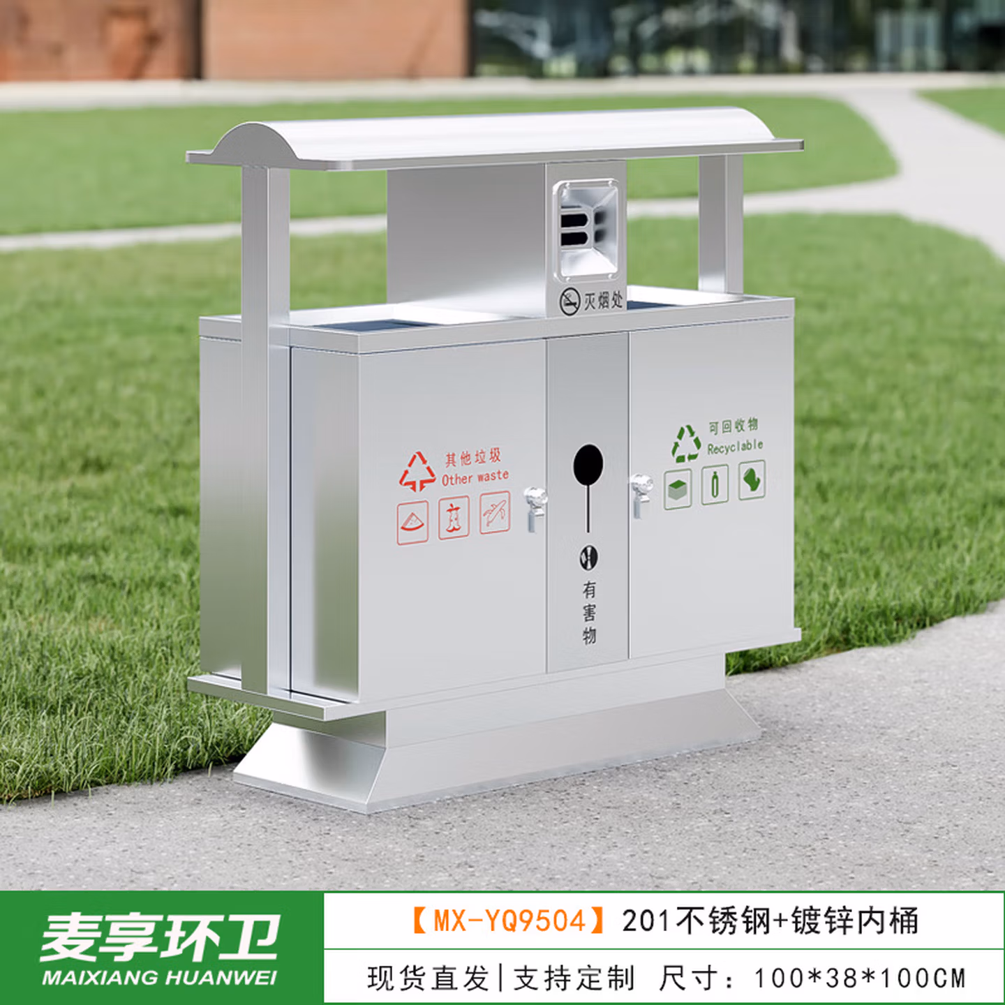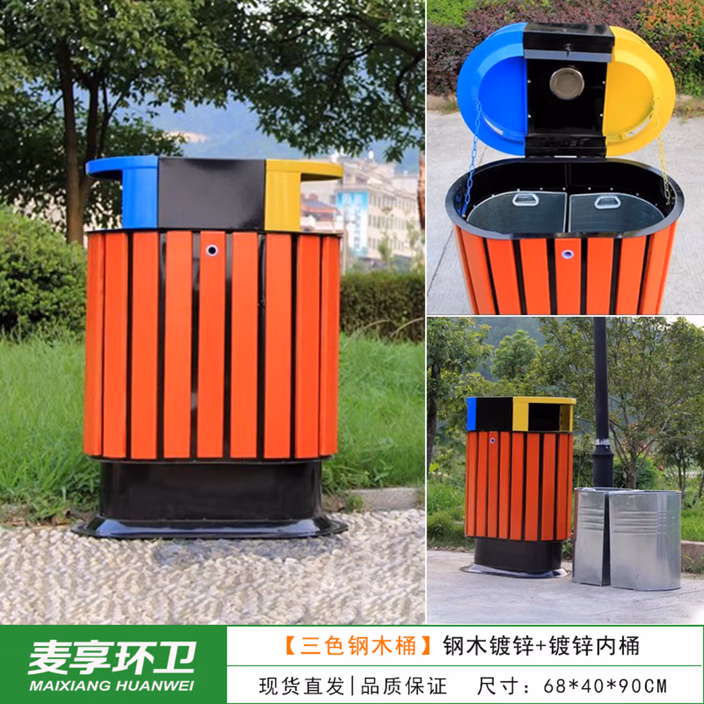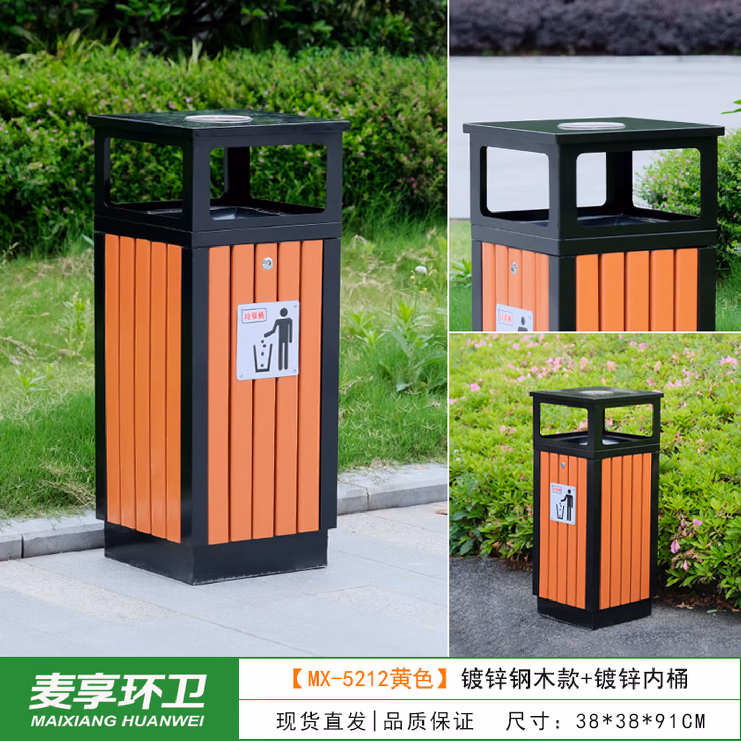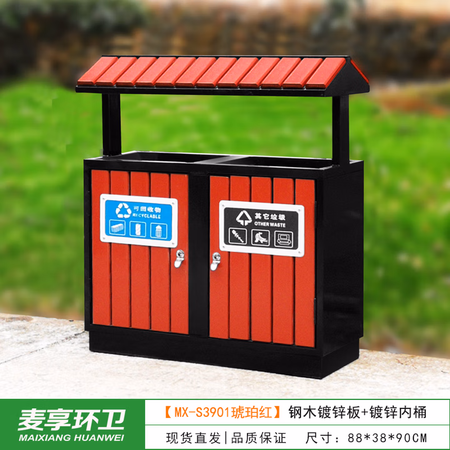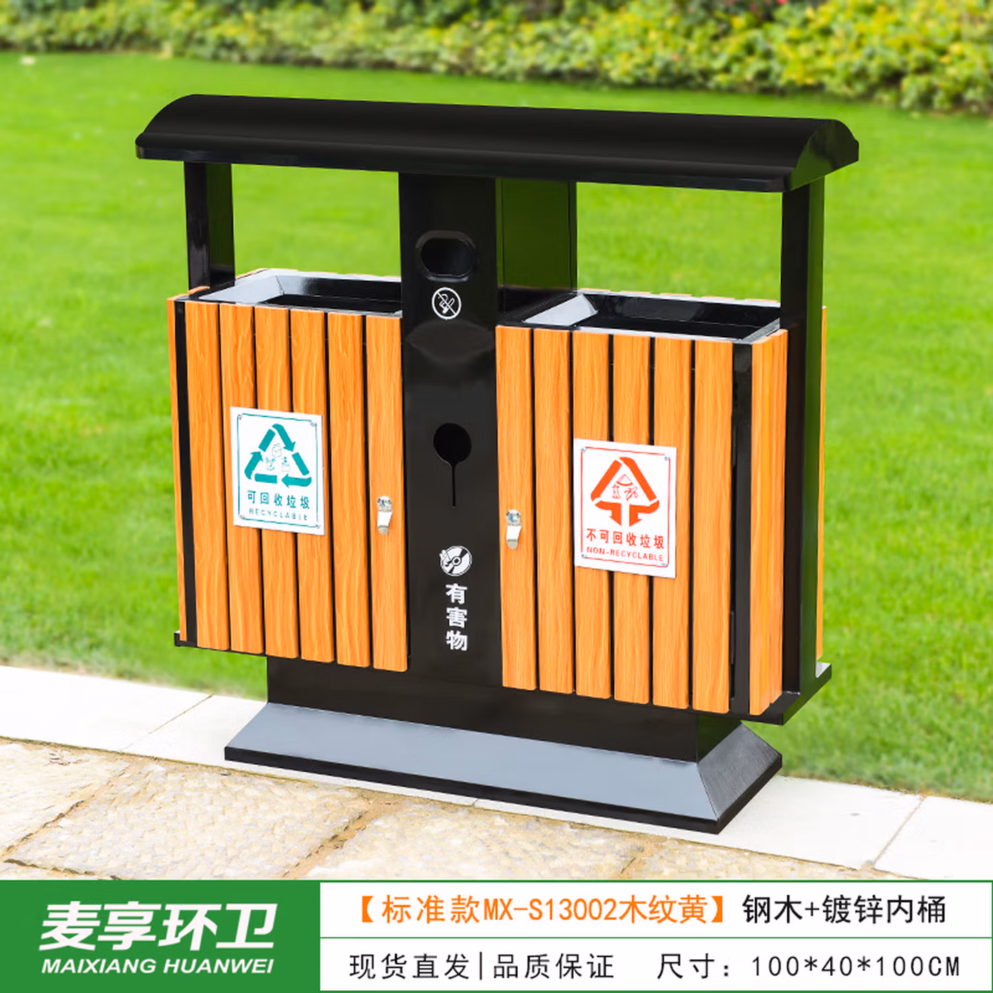> 定制户外垃圾桶不锈钢别墅庭院公园景区小区带大号环卫室外分类果皮箱 MX-D4808 咖啡色木条