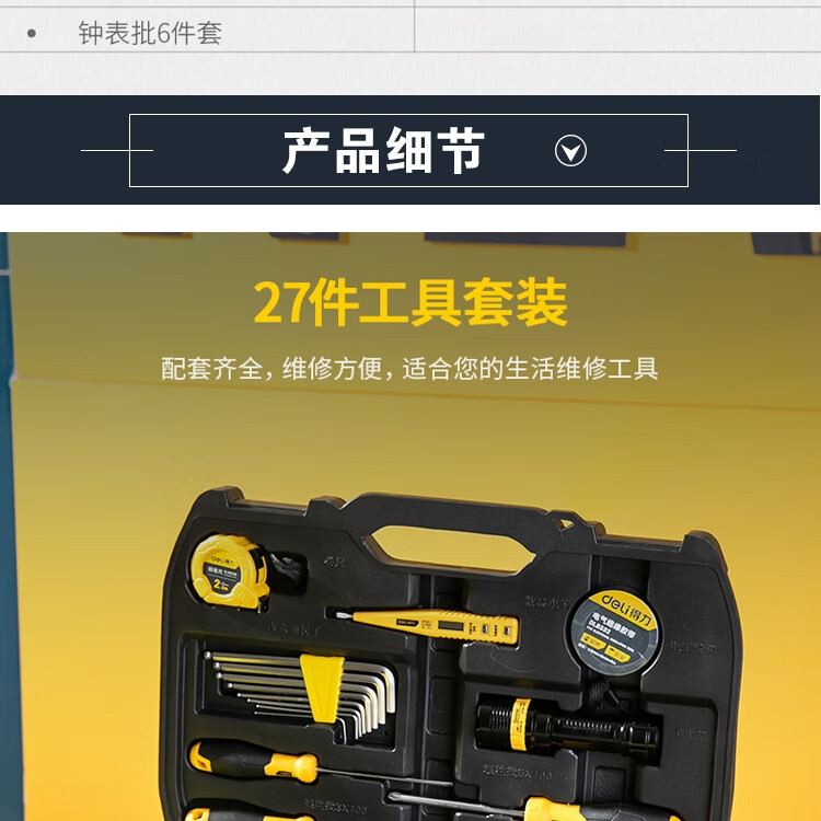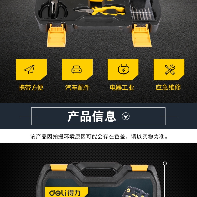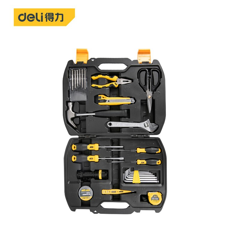 > 得力(deli) 多功能五金工具箱套装 手动工具电工维修工具箱应急包27件 DL5963 400249