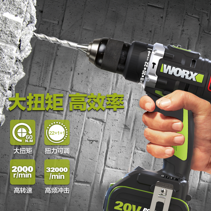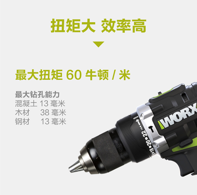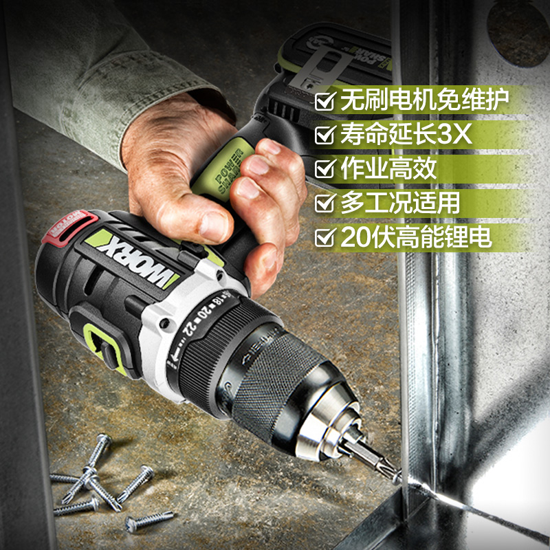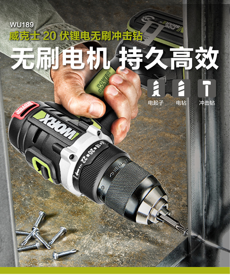 > 威克士(WORX)工业级无刷冲击钻WU189.2 冲击电钻锂电手电钻电转手钻电动螺丝刀专业电动工具