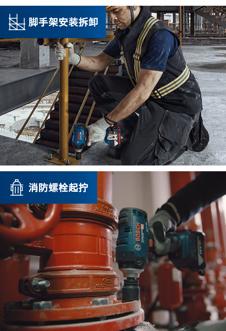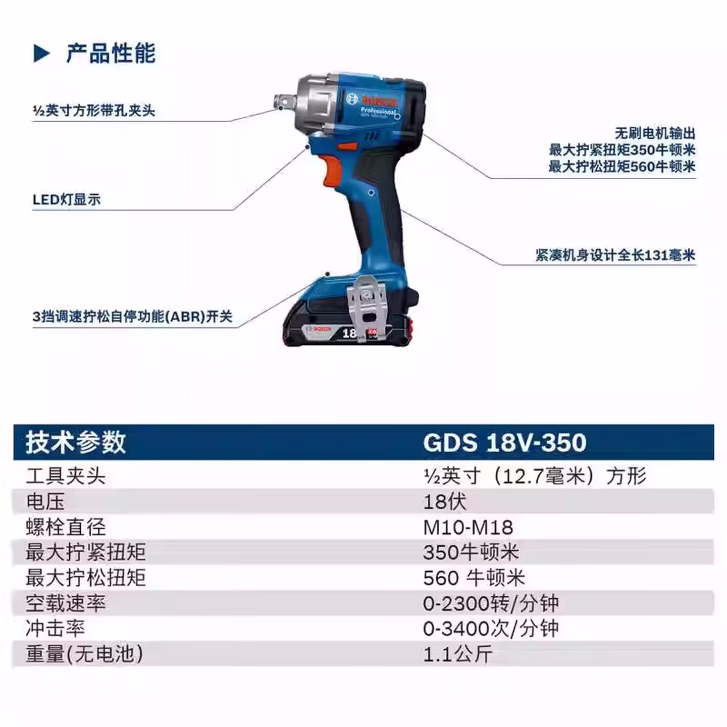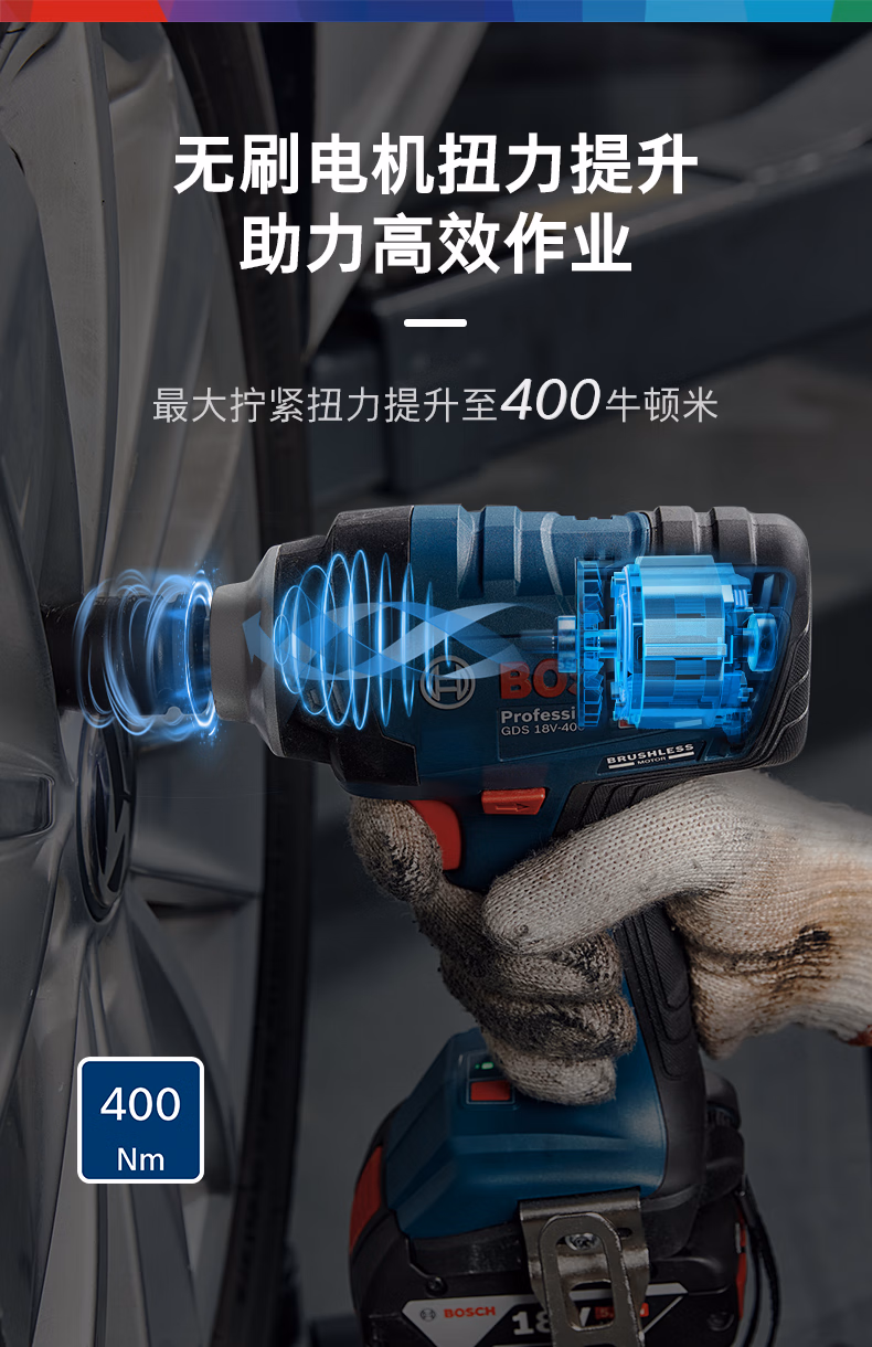 > 博世GDS18V-400无刷充电式冲击扳手架子工电风炮GDS350锂电大扭矩扳手 GDS18V-350【双电快充】4.0AH