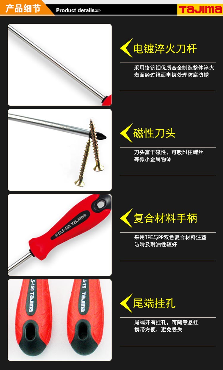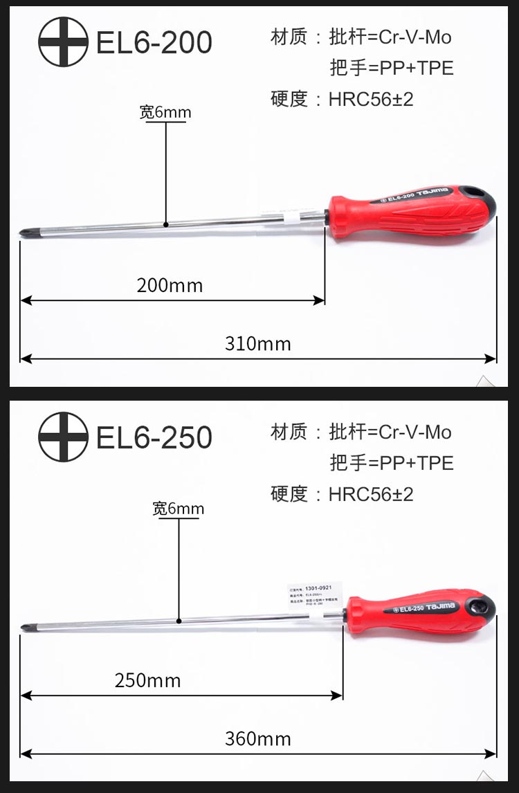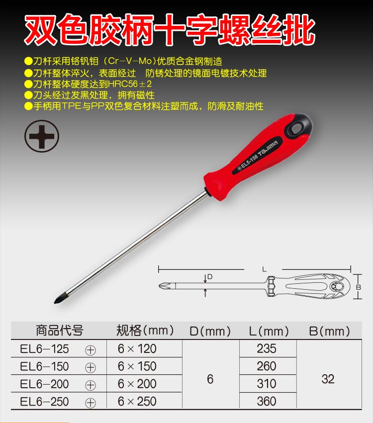 > 田岛(TaJIma)十字6×150mm橡胶柄螺丝刀EL6-150(+) 1301-0659