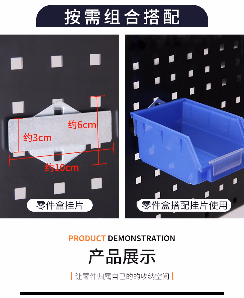 > 何佳功方孔洞洞板零件盒挂钩挂式五金工具配件物料螺丝元件盒塑料收纳盒 10个加厚挂片,单挂片