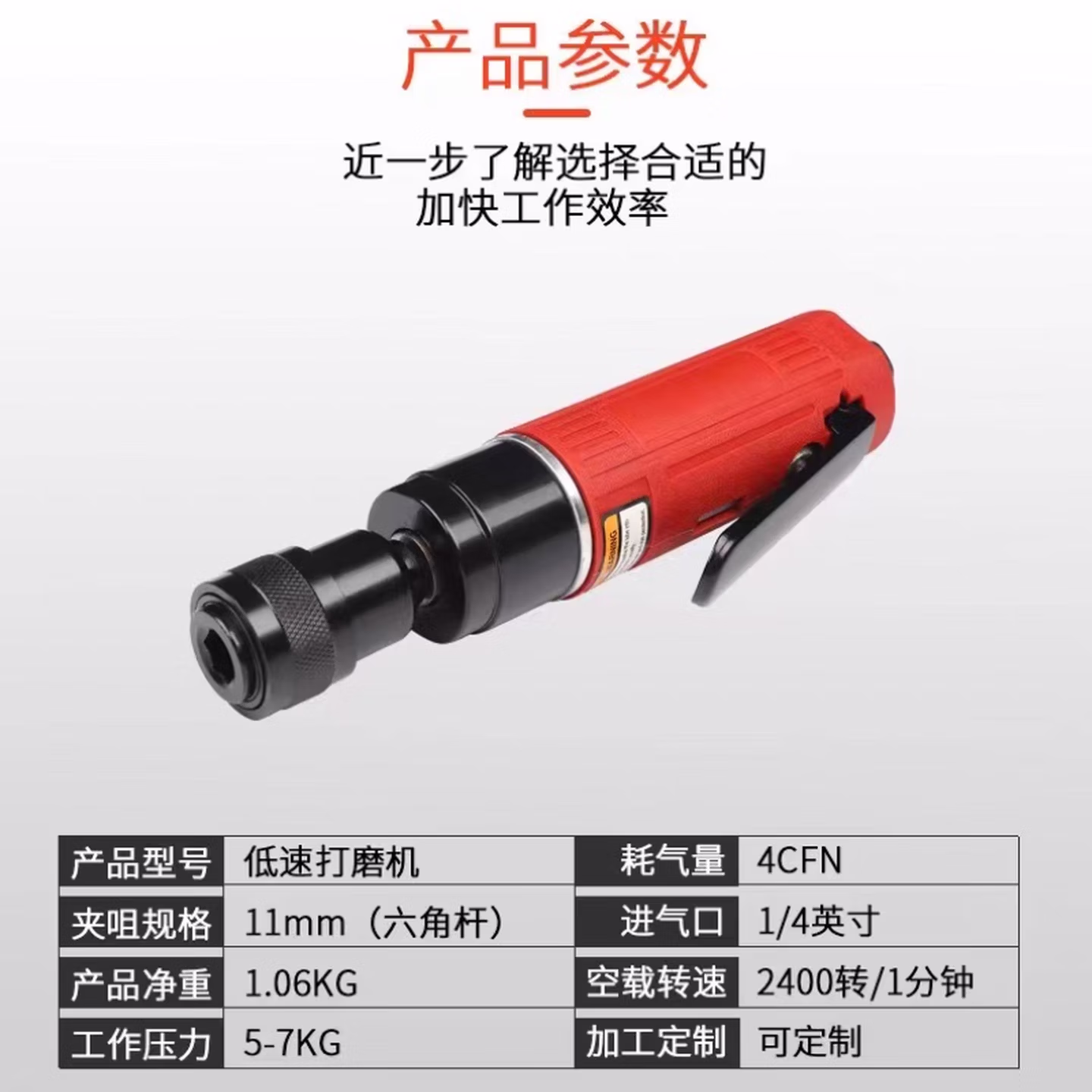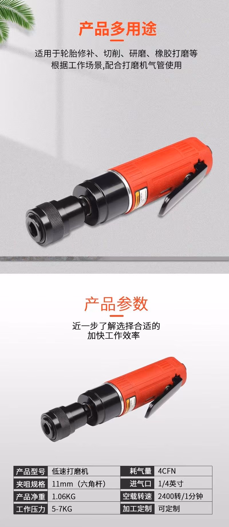 低速气动打磨机补胎磨光机气磨轮胎修补工具钨钢合金磨头 低速打磨机+55mm钨钢磨头