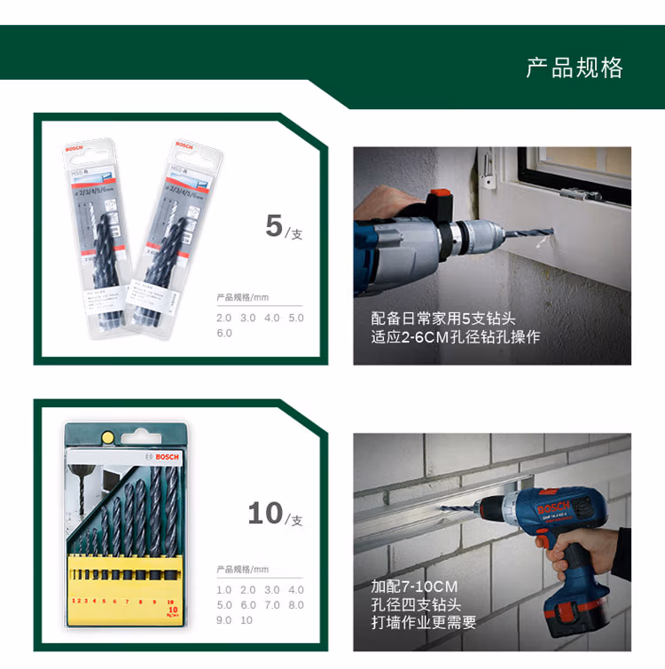> 博世金属麻花钻头套装13件套110mm手电钻钻头高速钢钻 麻花钻头10件套1-10mm