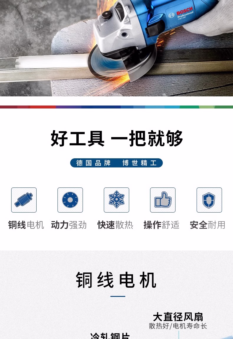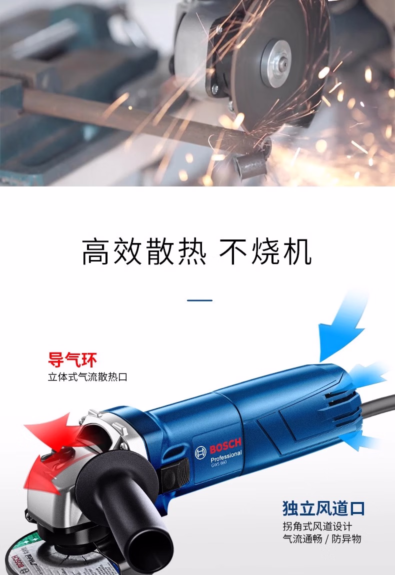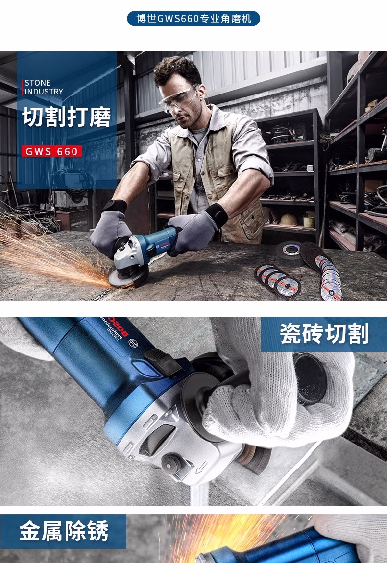 > 博世角磨机家用小型抛光切割手磨GWS660打磨机博士角向磨光机 GWS660官方标配