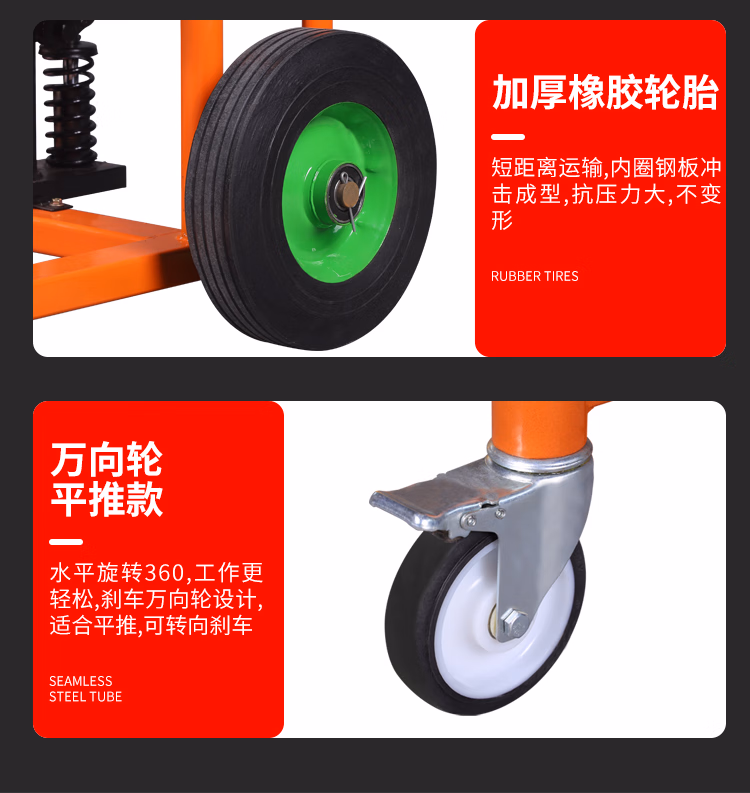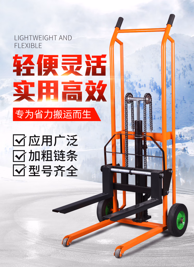 > 手动液压车微型叉车轻便小型家用搬运升降平台车手推装卸车堆垛车 12V充电400KG万向轮-1.2米货叉款