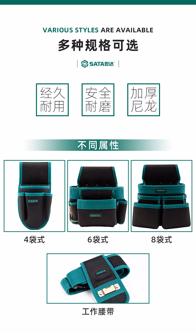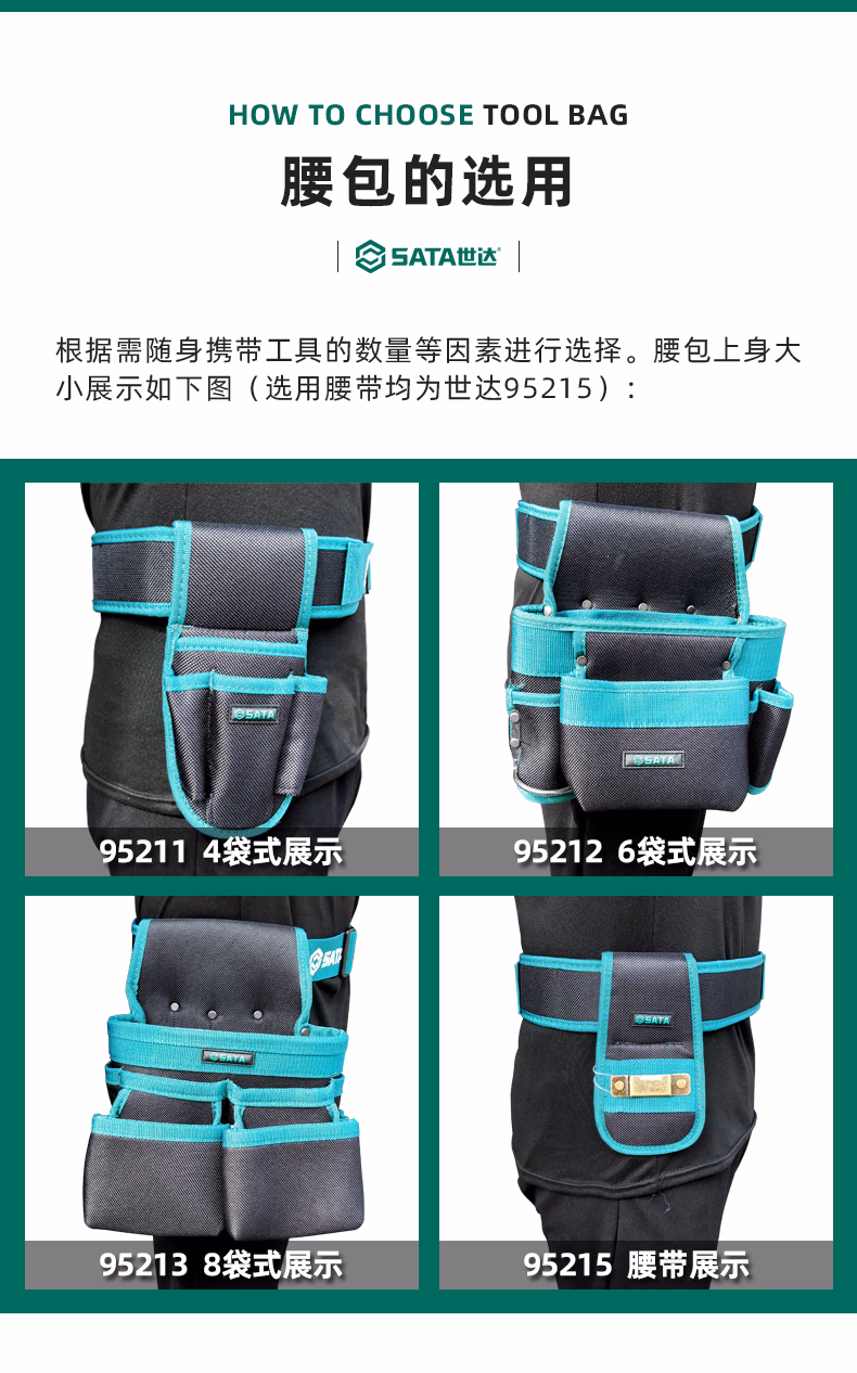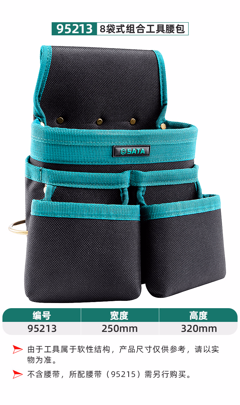 > 世达(SATA)工具腰包多功能电工男高空作业4袋组合木工便携式加厚帆布包 95213/8袋式腰包(不含腰带)