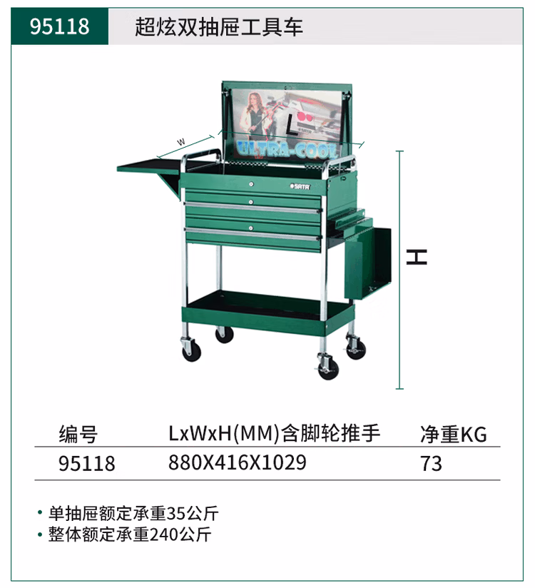 95112/两抽屉滑盖式工具车