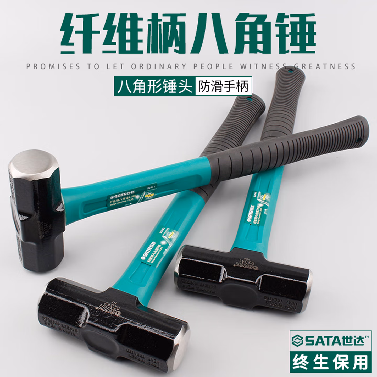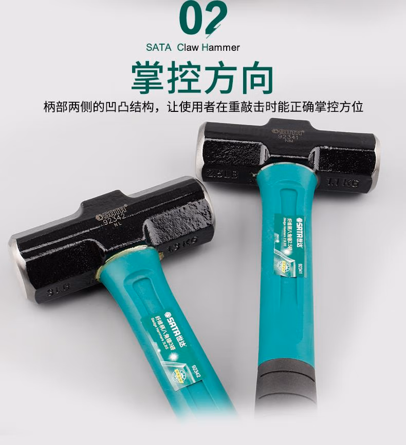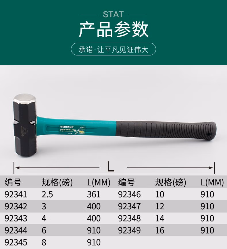 > 世达(SATA)纤维柄八角锤 6磅木柄石工锤木工铁榔头长方型建筑锤石工锤子92344 现货