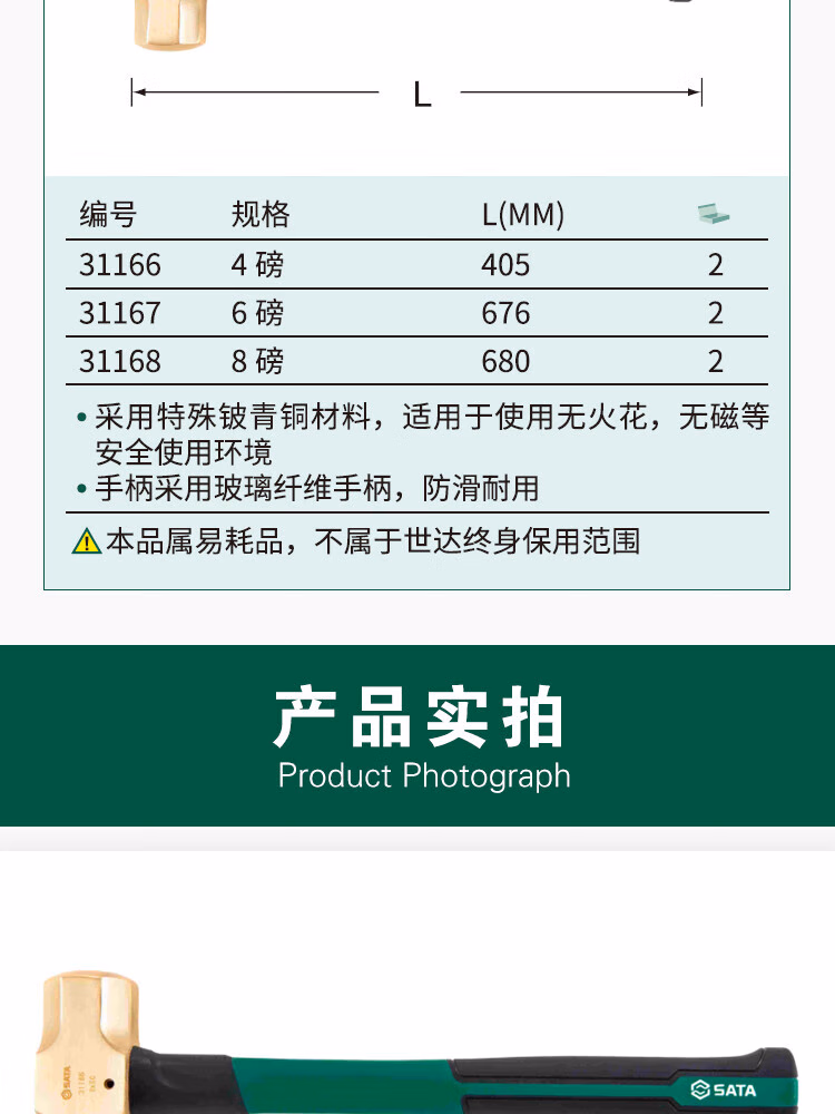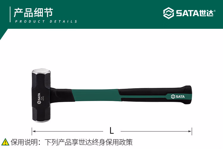 > 世达(SATA)纤维柄八角锤 14磅木柄石工锤木工铁榔头长方型建筑锤石工锤子92348 现货