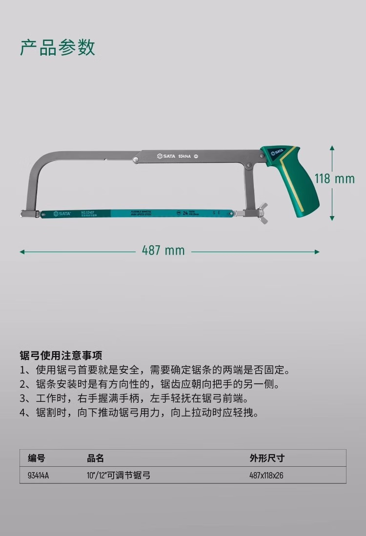 > 世达钢锯锯弓锯条合金型家用锯子木工锯手工锯迷你锯子多规格 12"高速钢锯条32齿93418(10根装)