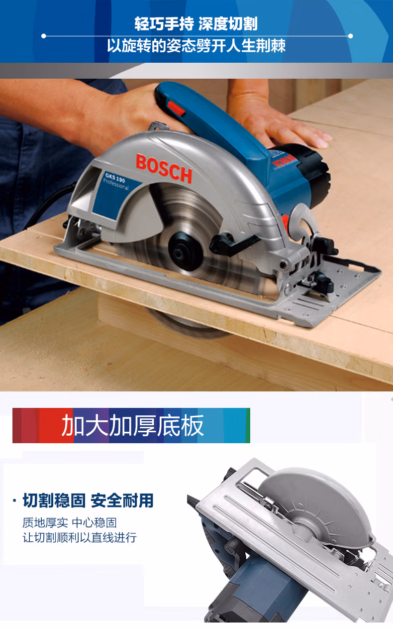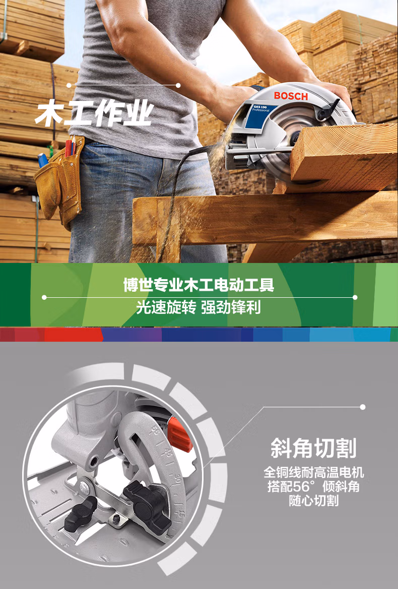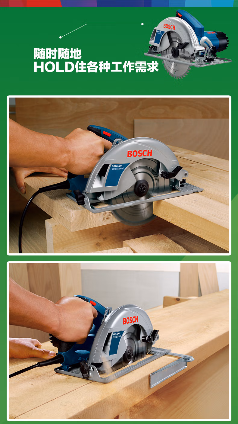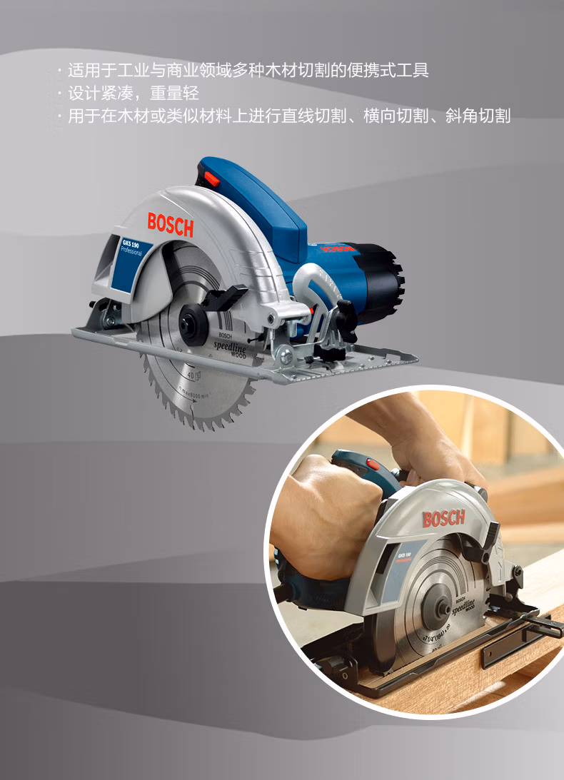 > 博世(BOSCH)电圆锯GKS190木工锯切割机木材家用专业电园锯电动工具大功率电锯7寸1400w GKS 190标配