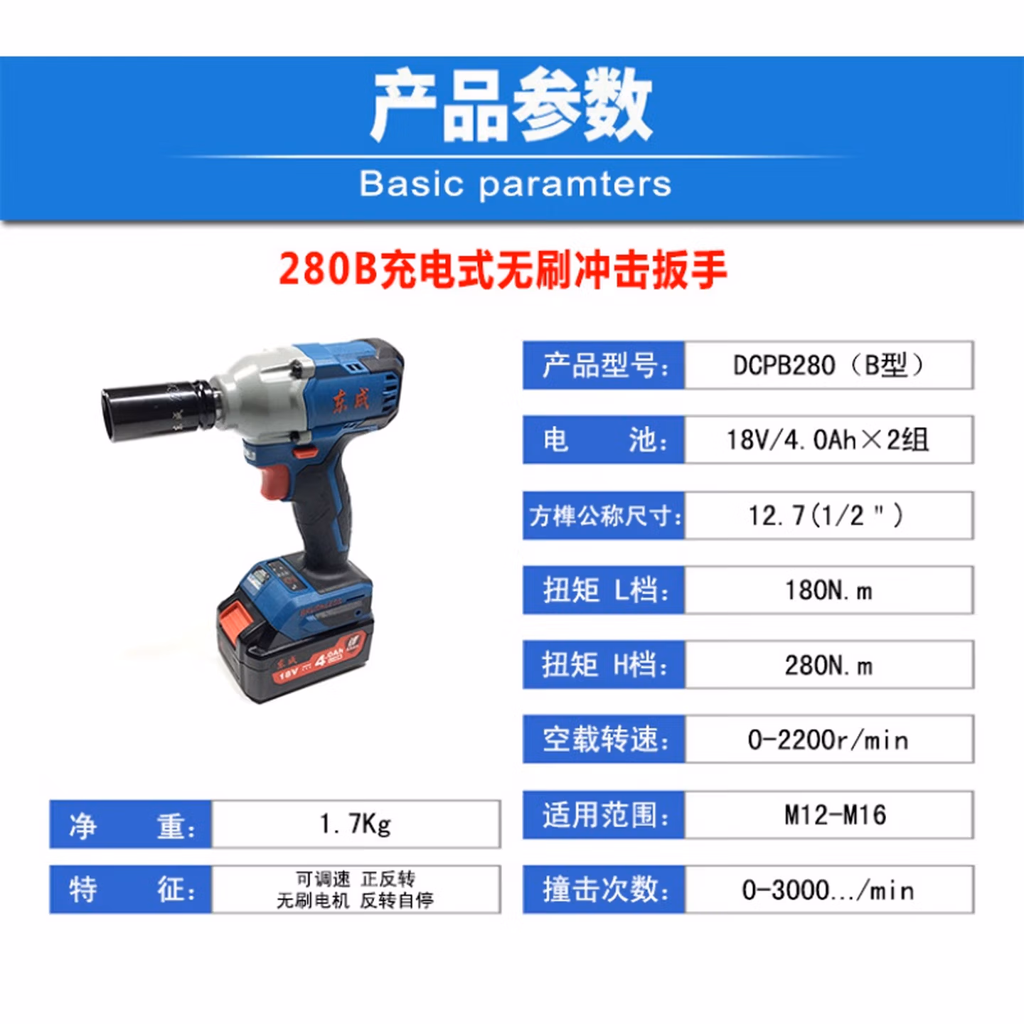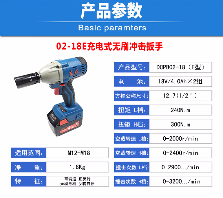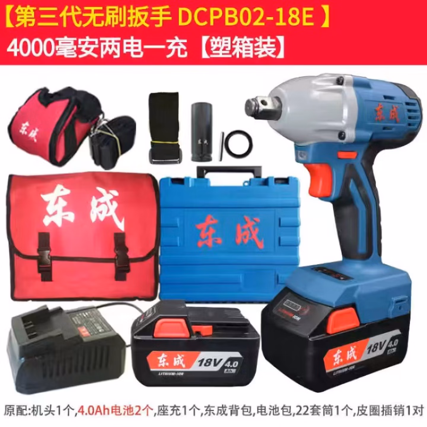 > 东成电动扳手无刷DCPB02-18E/280B/03-18锂电18V风炮多功能电扳 DCPB280B(无刷4.0AH2电1充)