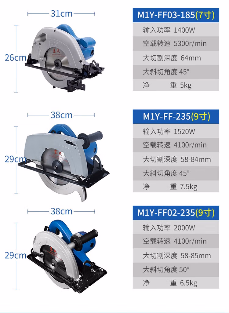 > 东成电圆锯手提电锯木工切割机圆盘锯小台锯倒装电锯家用铝塑电动工具 M1Y-FF02-235(9寸)