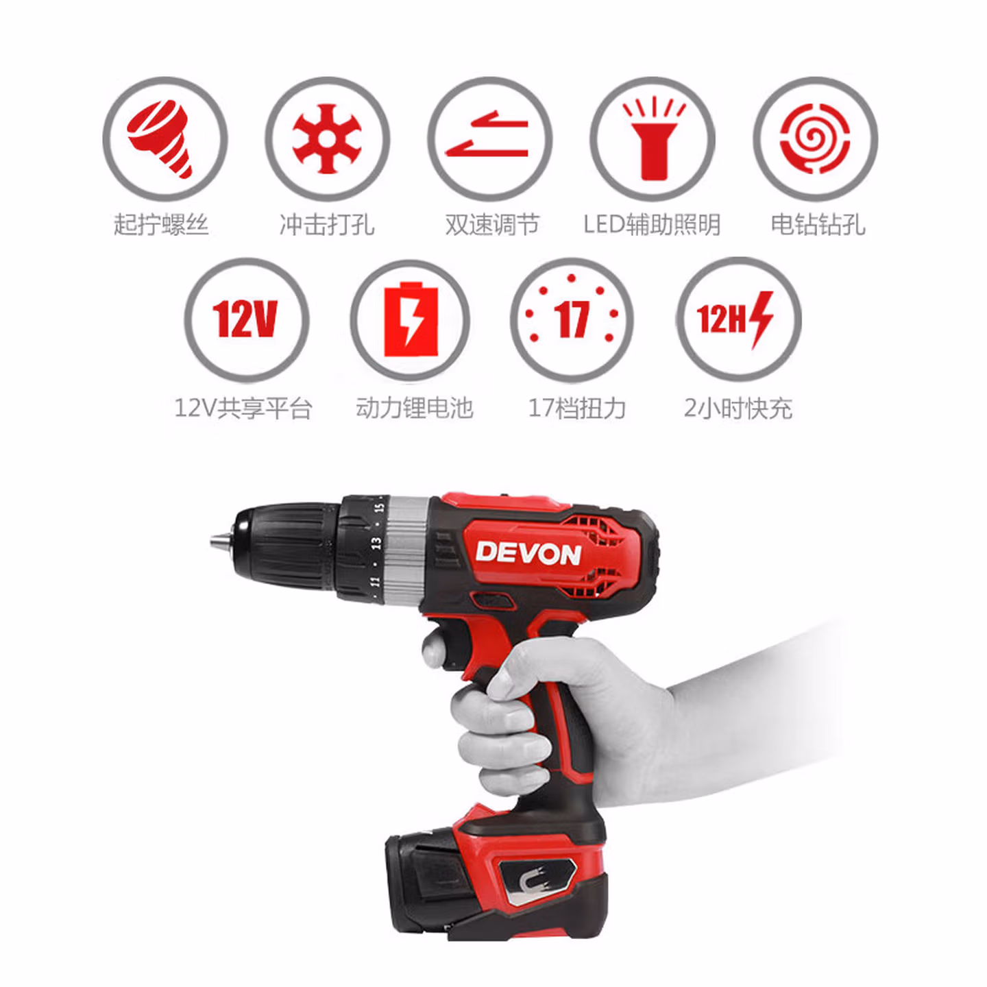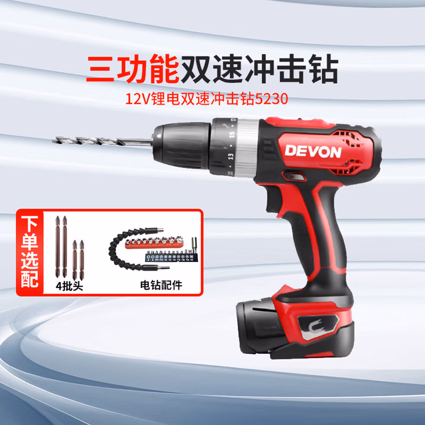 大有12V锂电冲击钻家用多功能手电动螺丝工具5230 5230双电一充2点0A+大有32件套