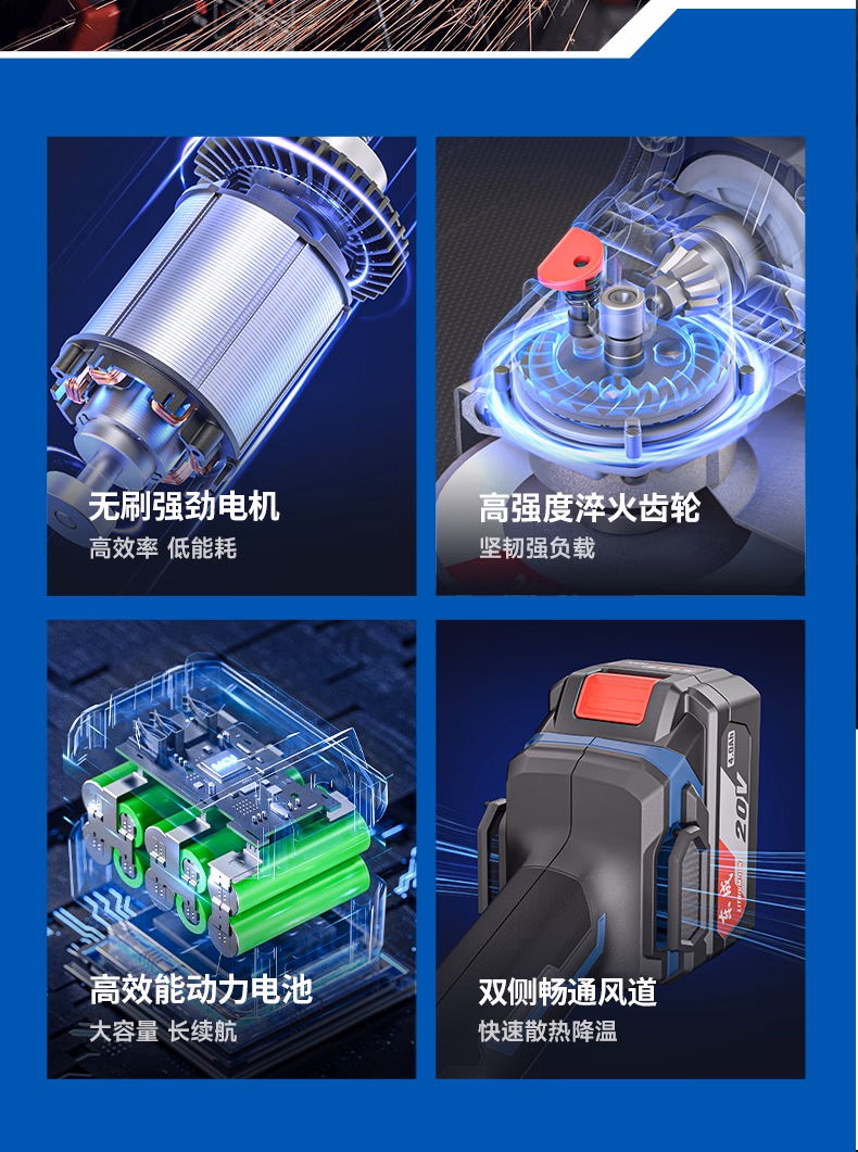 > 东成20V无刷充电式角磨机锂电多功能切割机打磨机抛光机DCSM03-100E