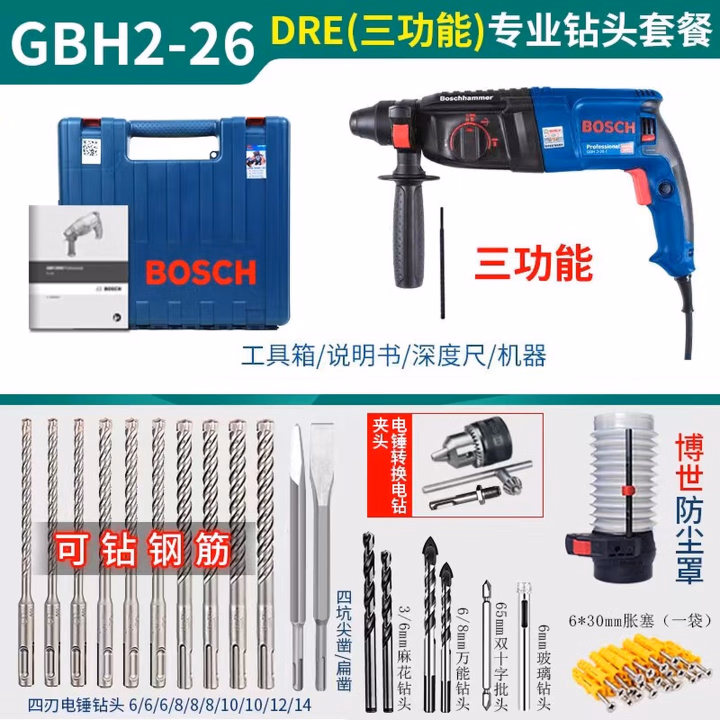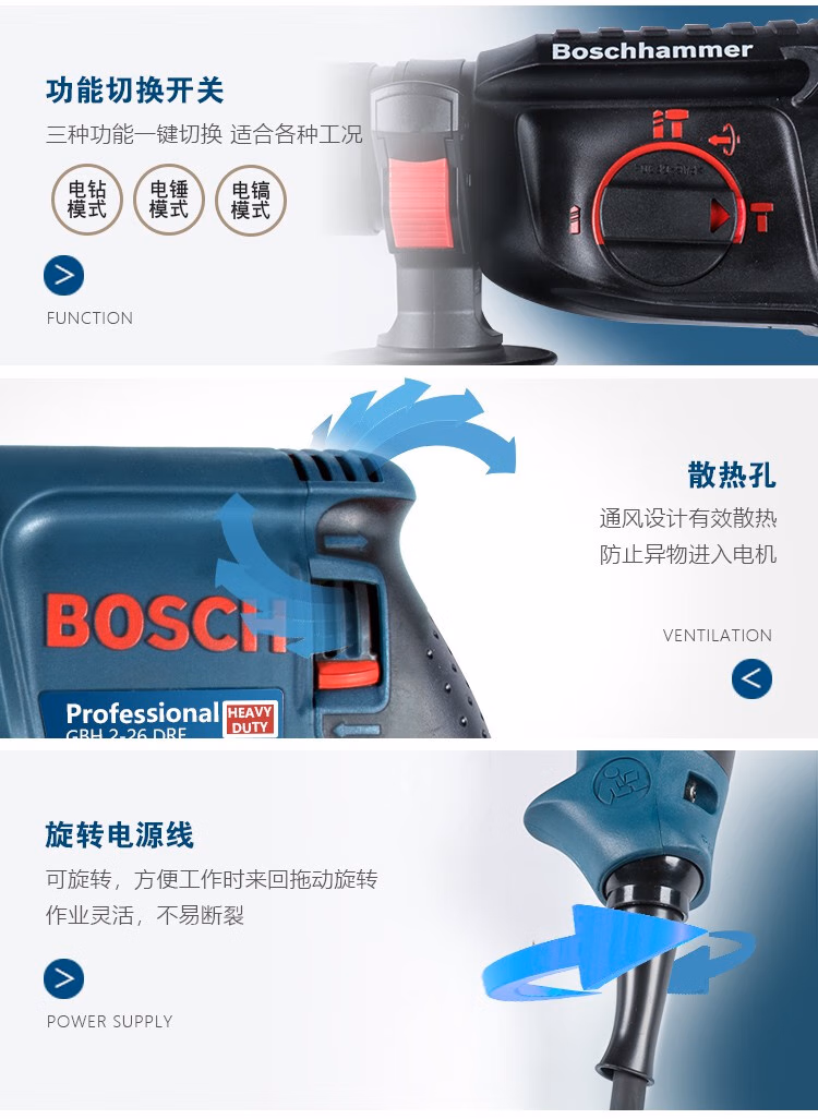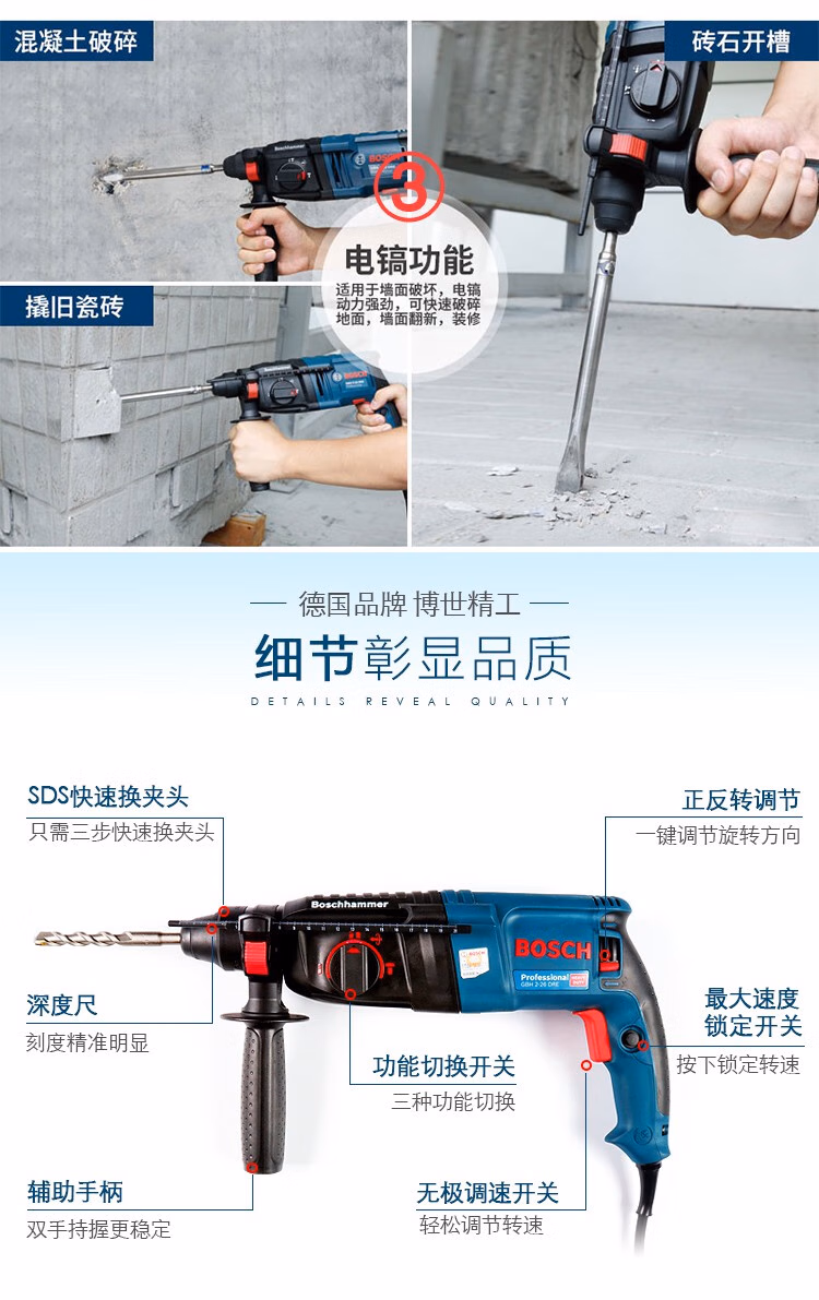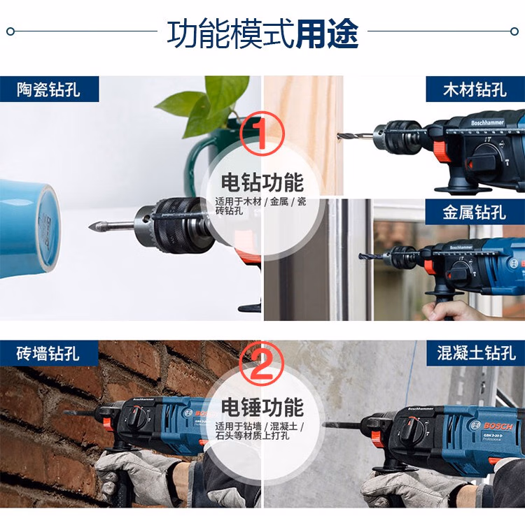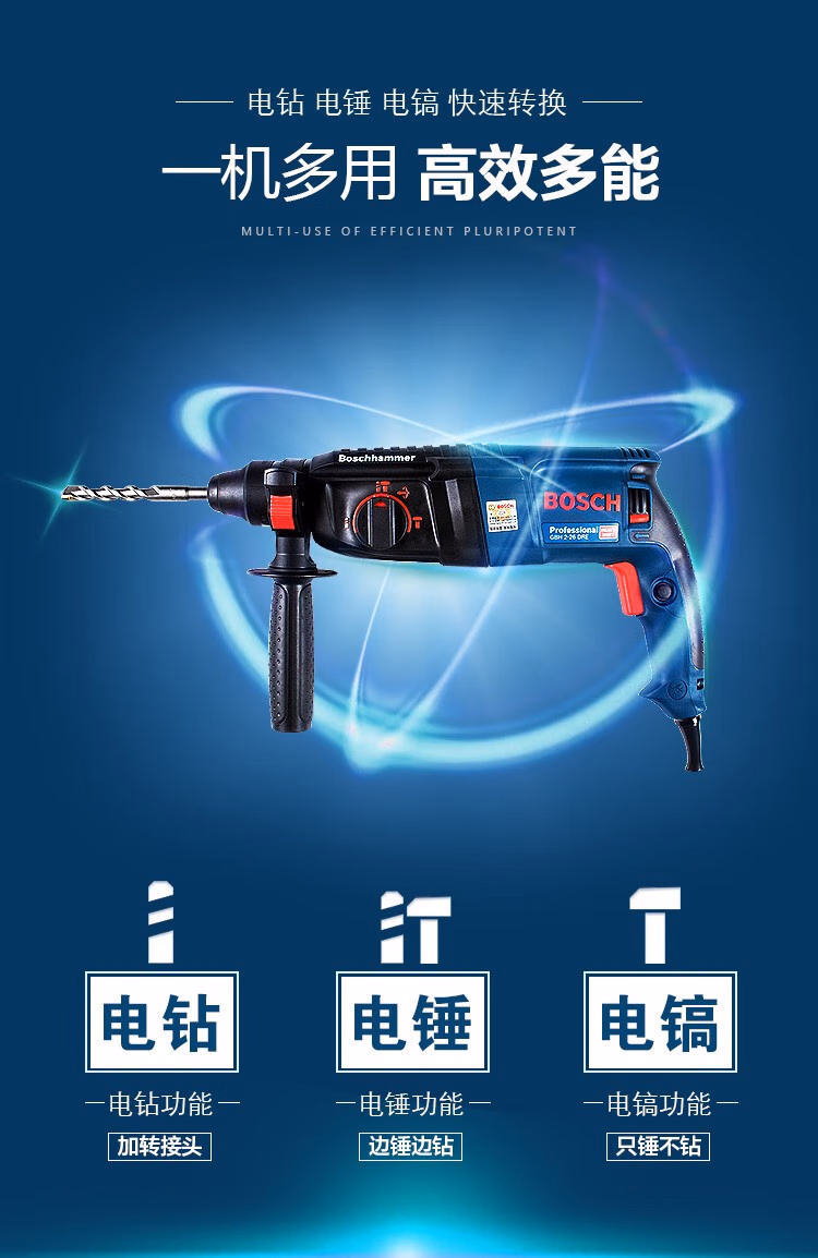 > 博世轻型GBH226DRE2428两三用冲击钻220多功能电钻电锤电镐 三功能GBH2000DRE标配