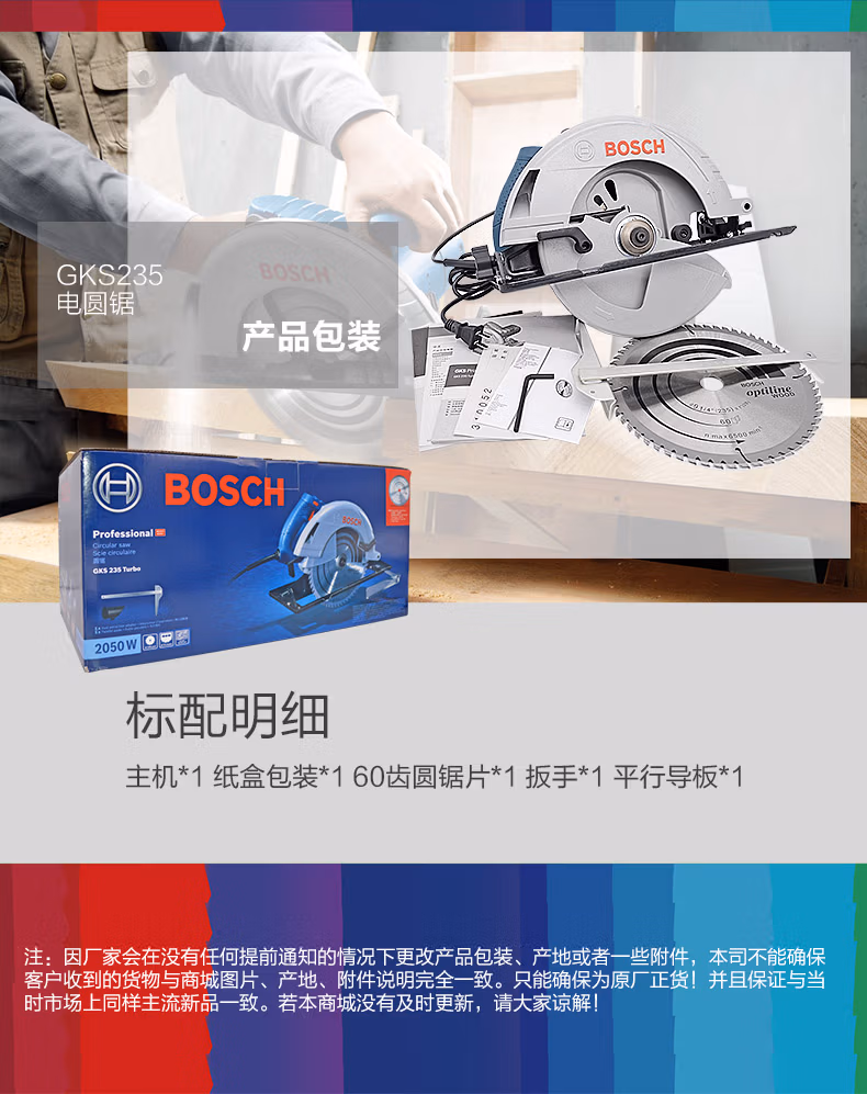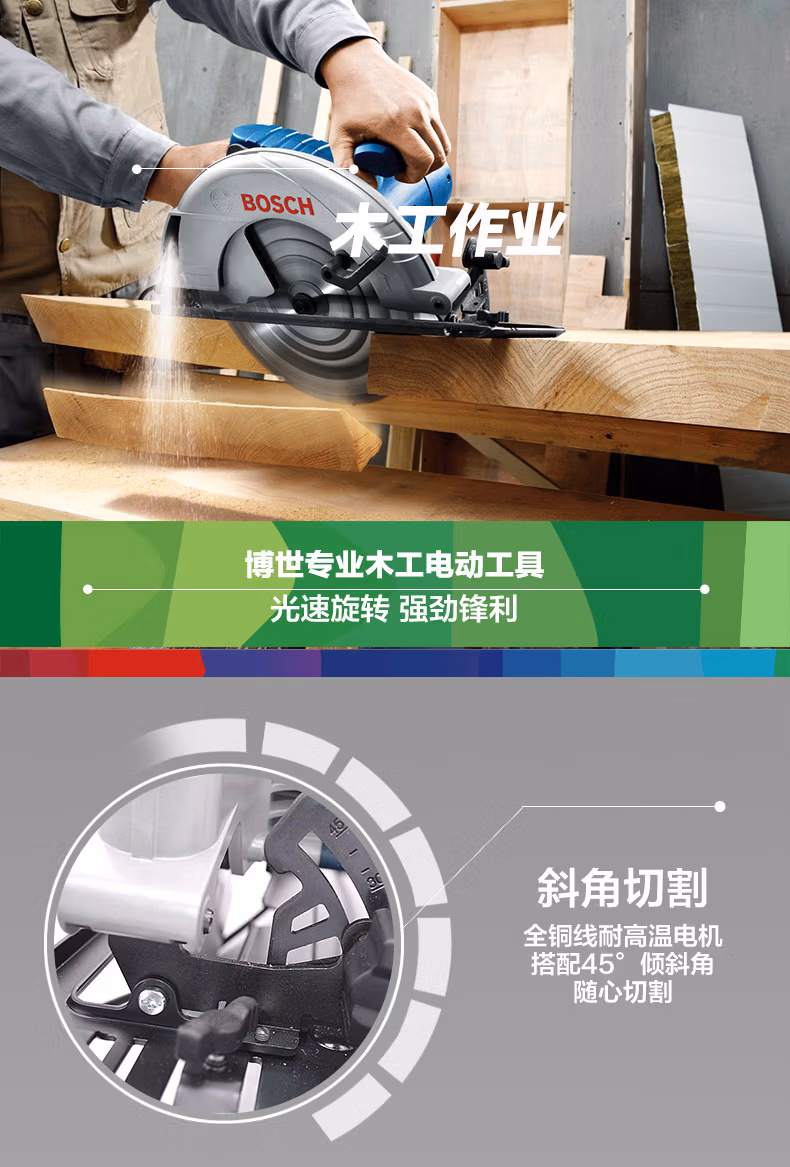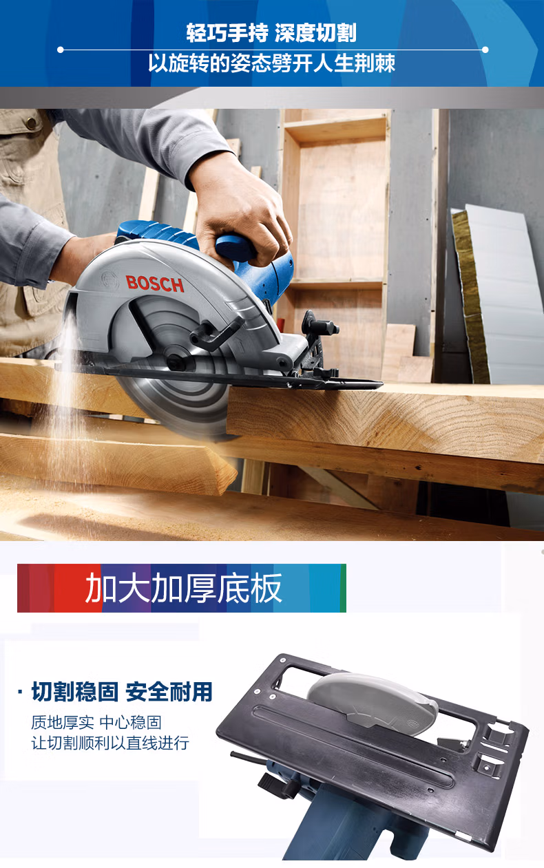 > 博世(BOSCH)切割机电圆锯9寸GKS235木工电锯手提2050w圆盘锯家用木板铝塑板