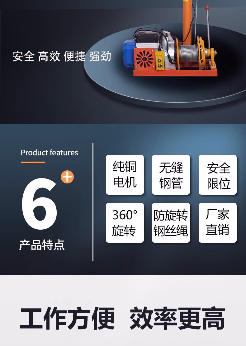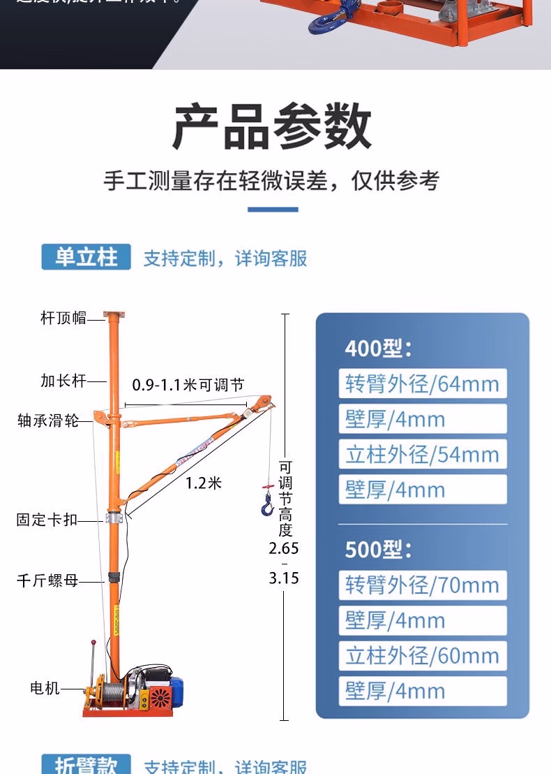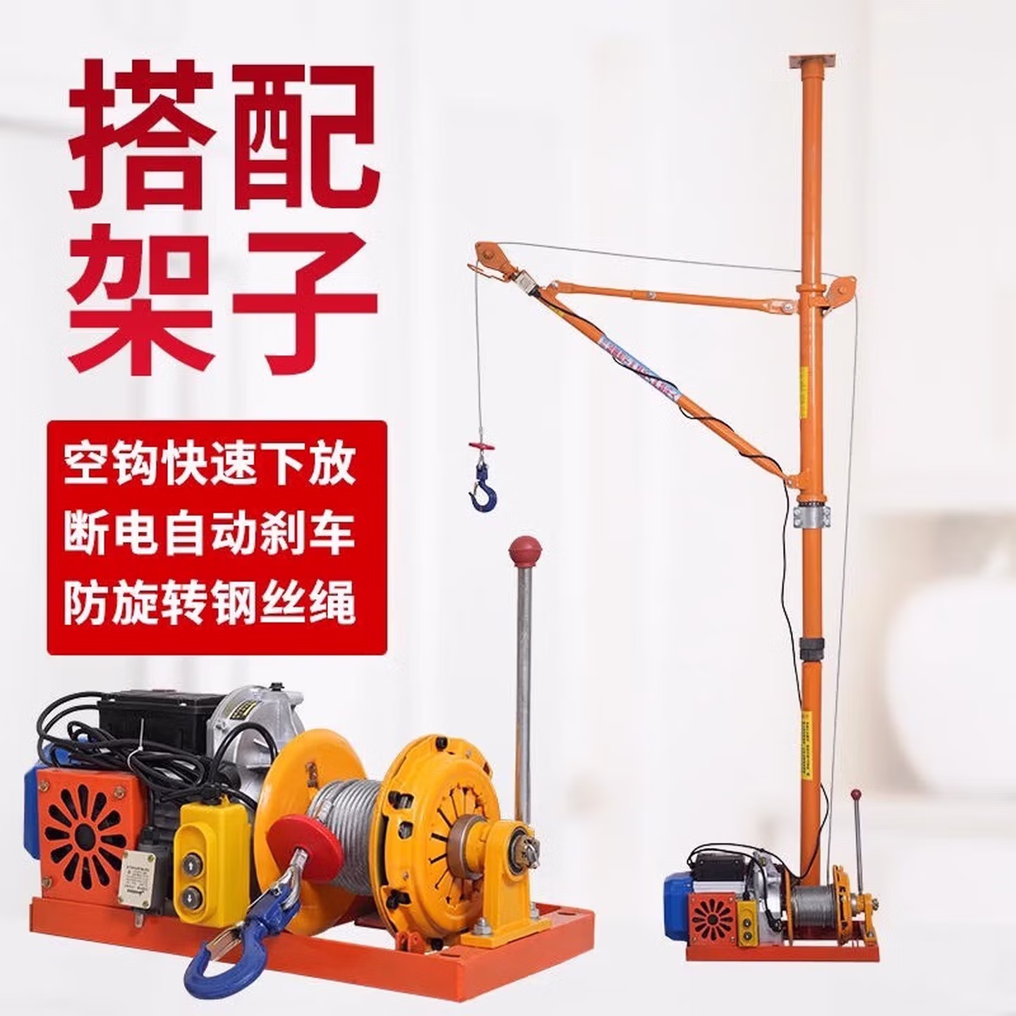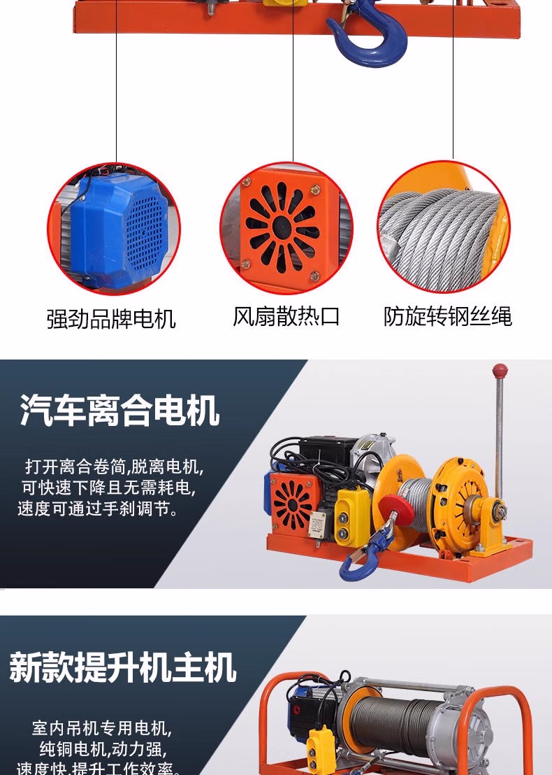 > 室内吊运机220V建筑装修吊沙门窗上料提升家用小型吊机升降起重机 特厚单立柱500型30米绳【汽车离合】