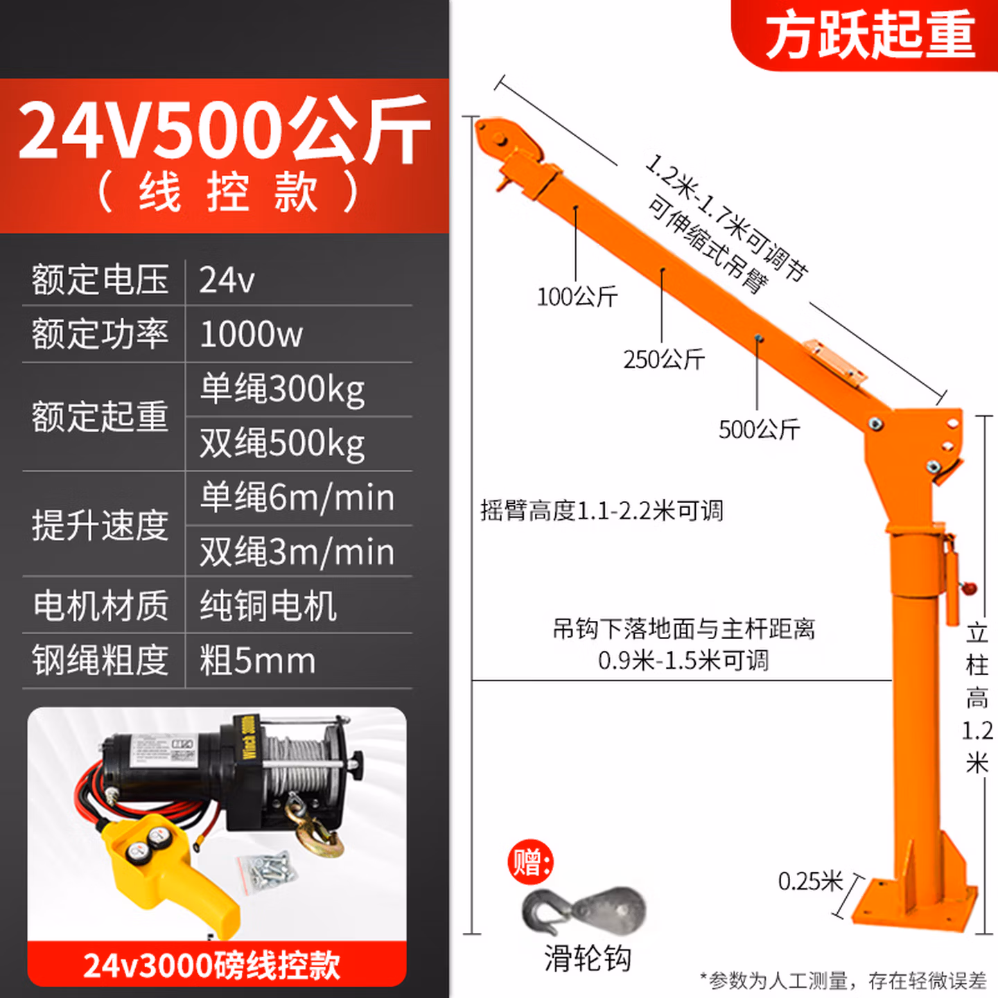 24v500公斤国标加厚[线控+遥控]