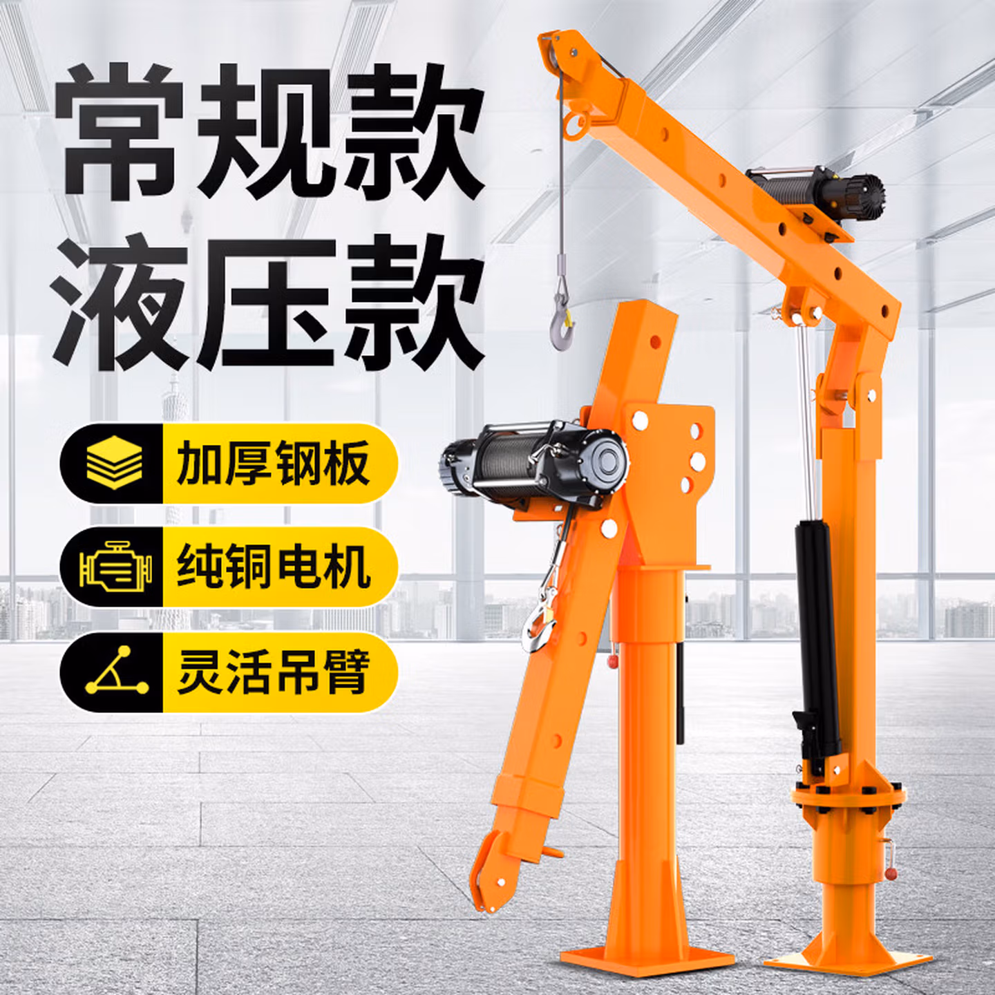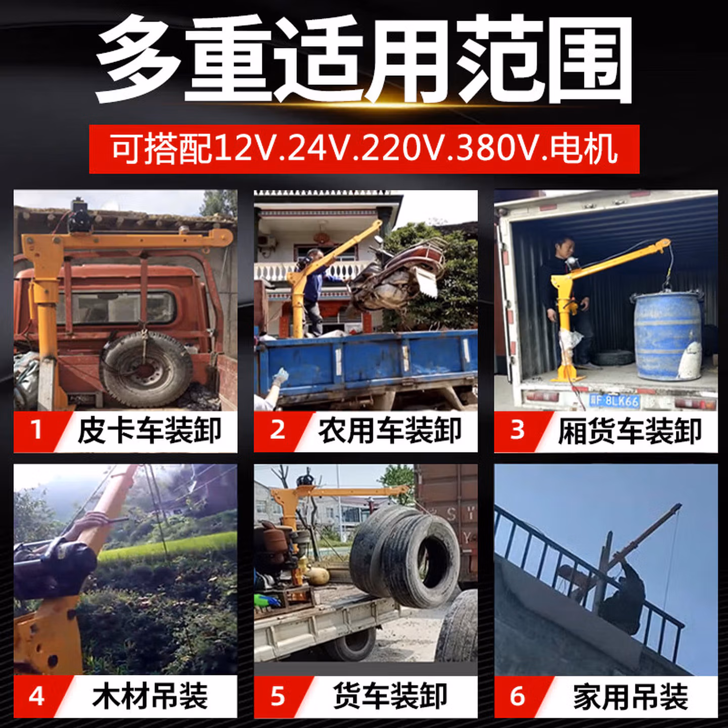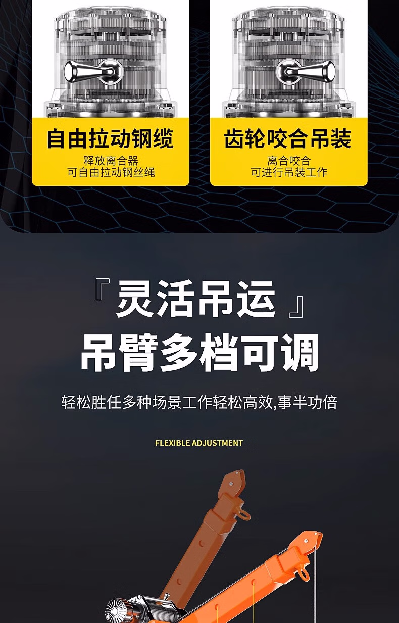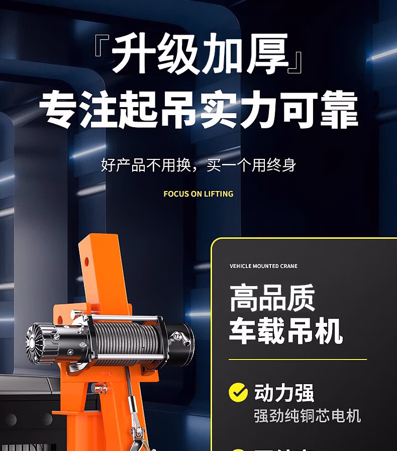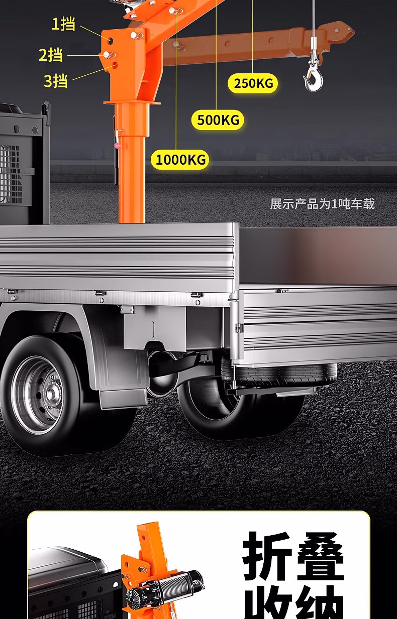 > 车载吊机12v24v随车吊货车三轮1吨220v吊机架家用小型升降起重机 12v500公斤国标加厚【线控】