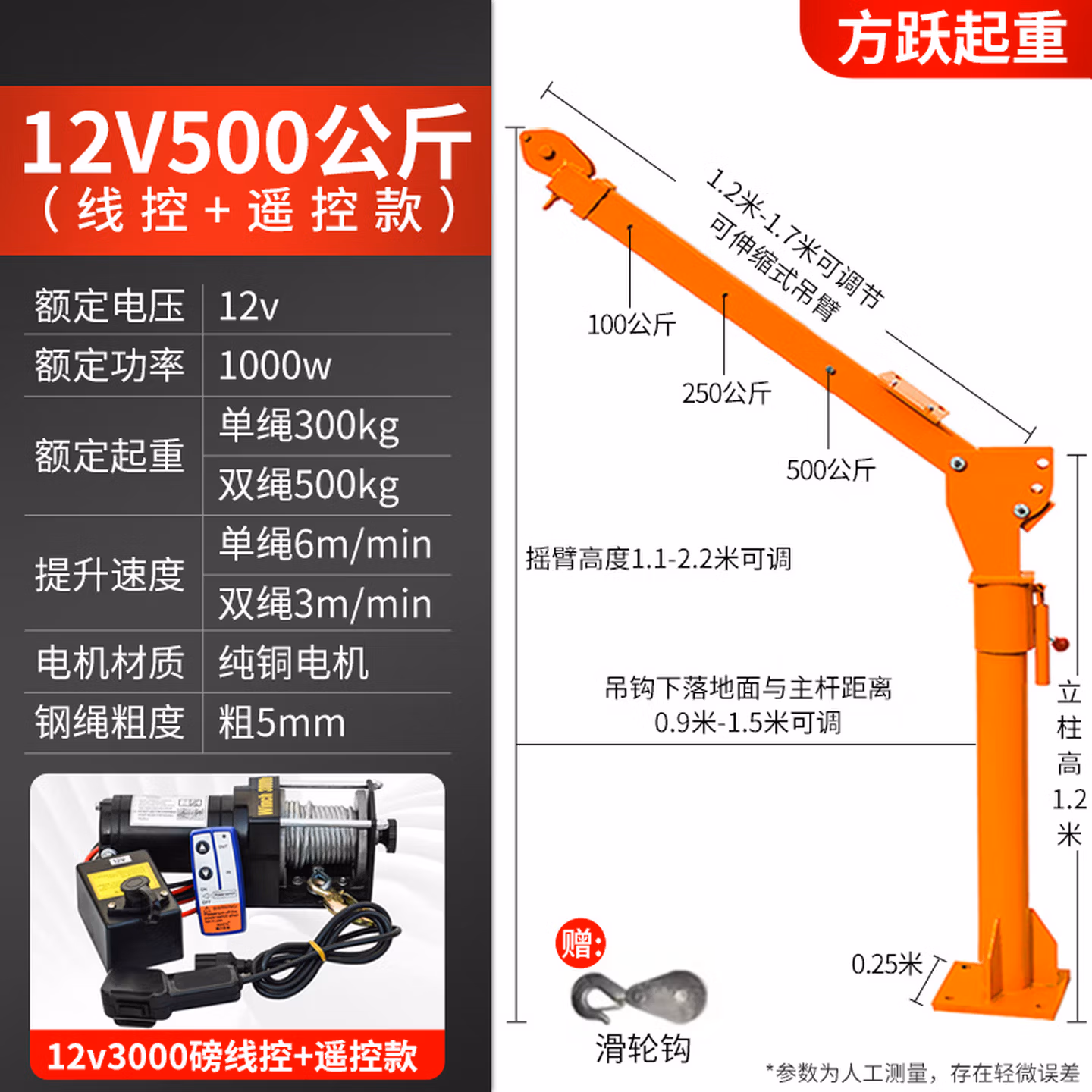 12v500公斤国标加厚[线控+遥控]