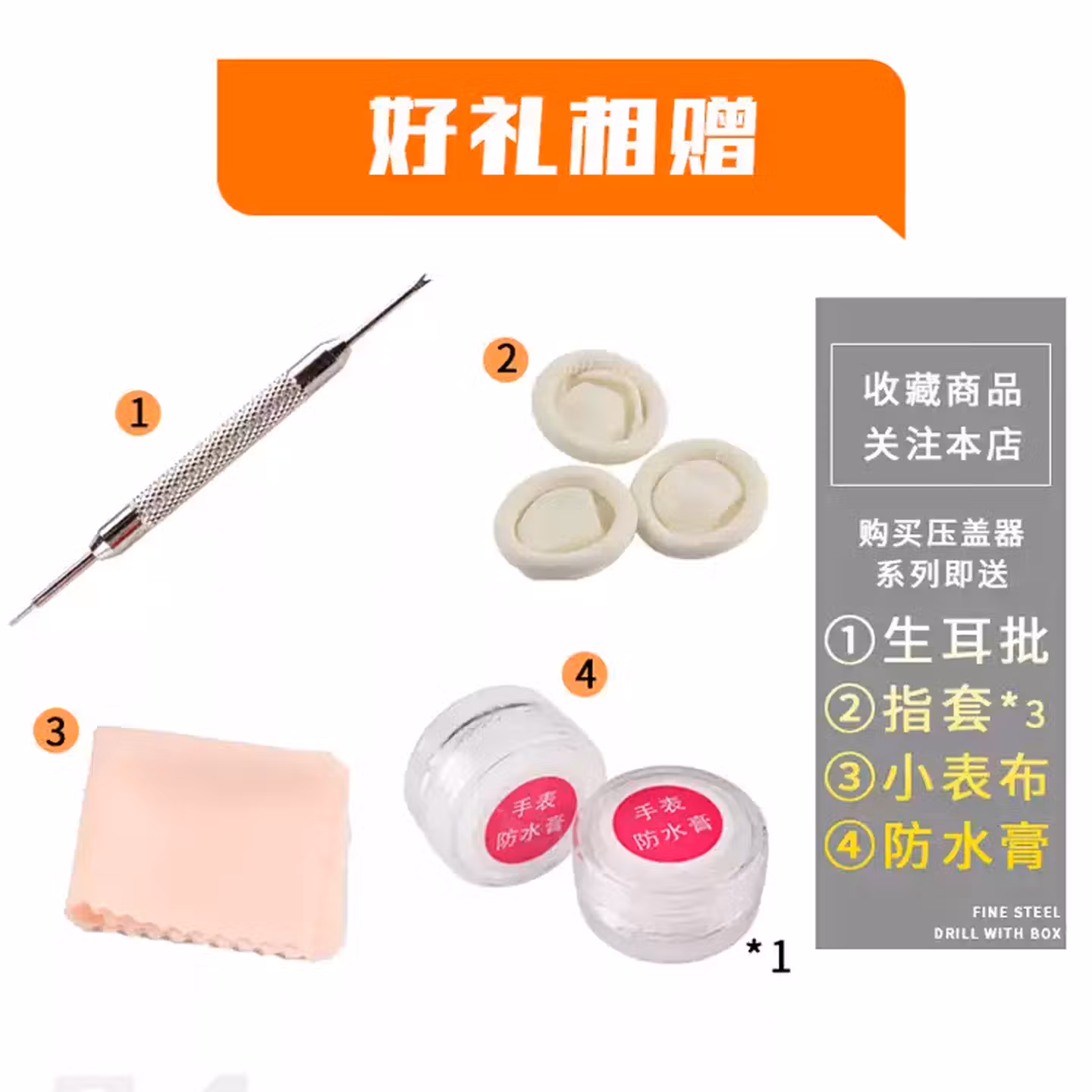> 何佳功手表压盖器修表工具手表压盖器台式压盖机后盖压盖钳换电池组合套 翘刀+固定器+防水膏