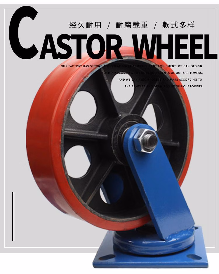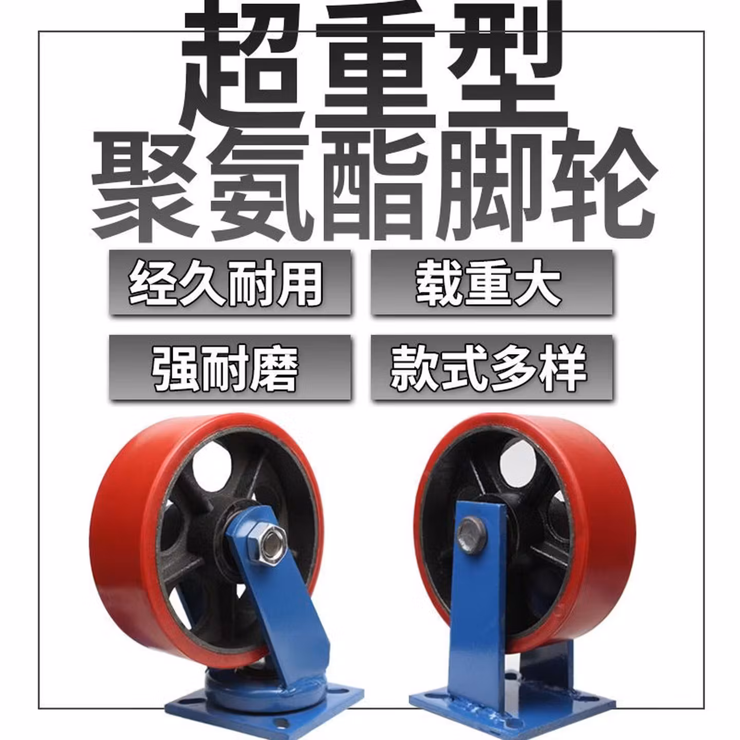 超重型万向轮4寸5寸6寸8寸10寸12寸铁芯聚氨酯脚轮载重轱辘 12*3寸万向带刹车